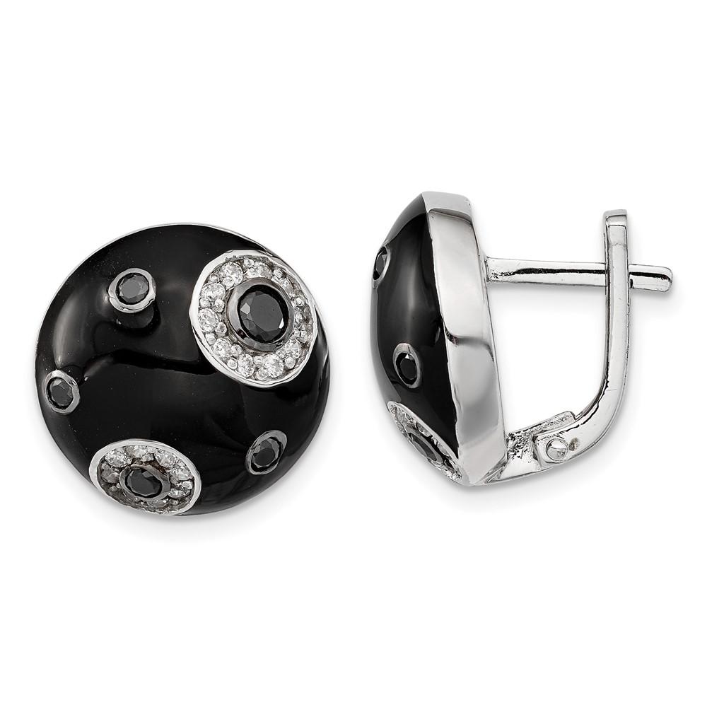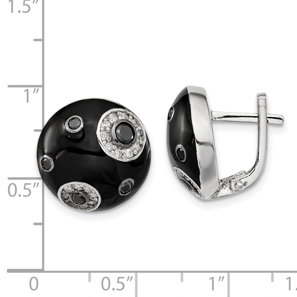 Sterling Silver Polished CZ Black Enameled Omega Back Earrings