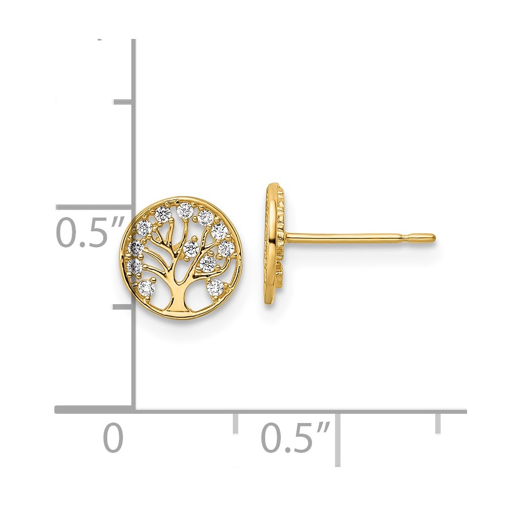 14k CZ Tree of Life in Circle Post Earrings