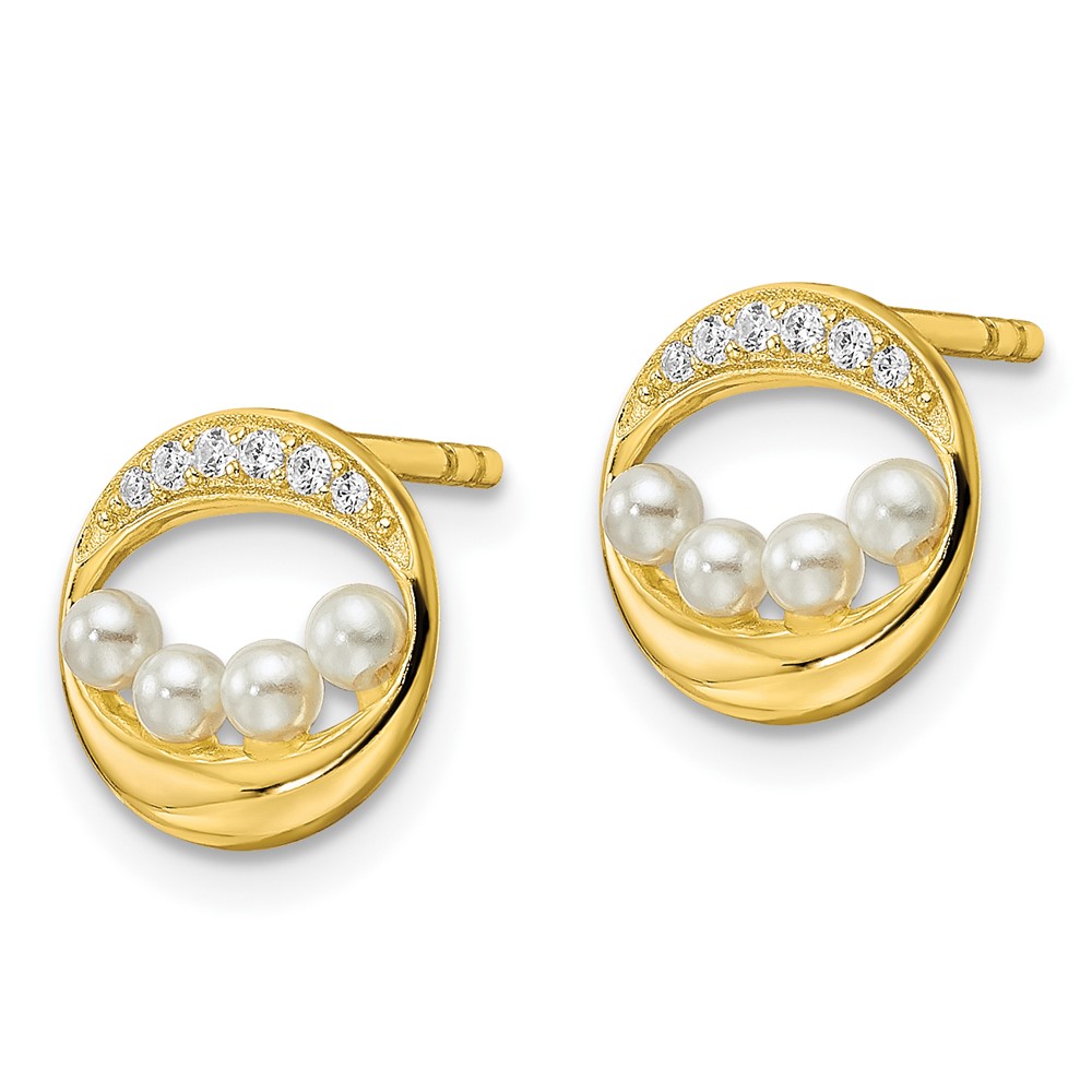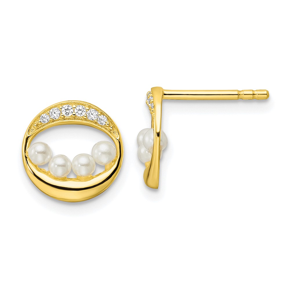 Sterling Silver Gold-tone CZ & Shell Pearl Post Earrings