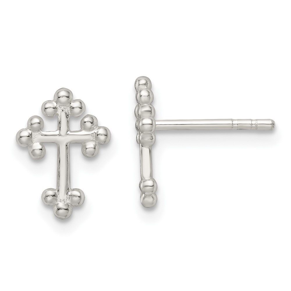 Sterling Silver Polished Budded Cross Post Earrings