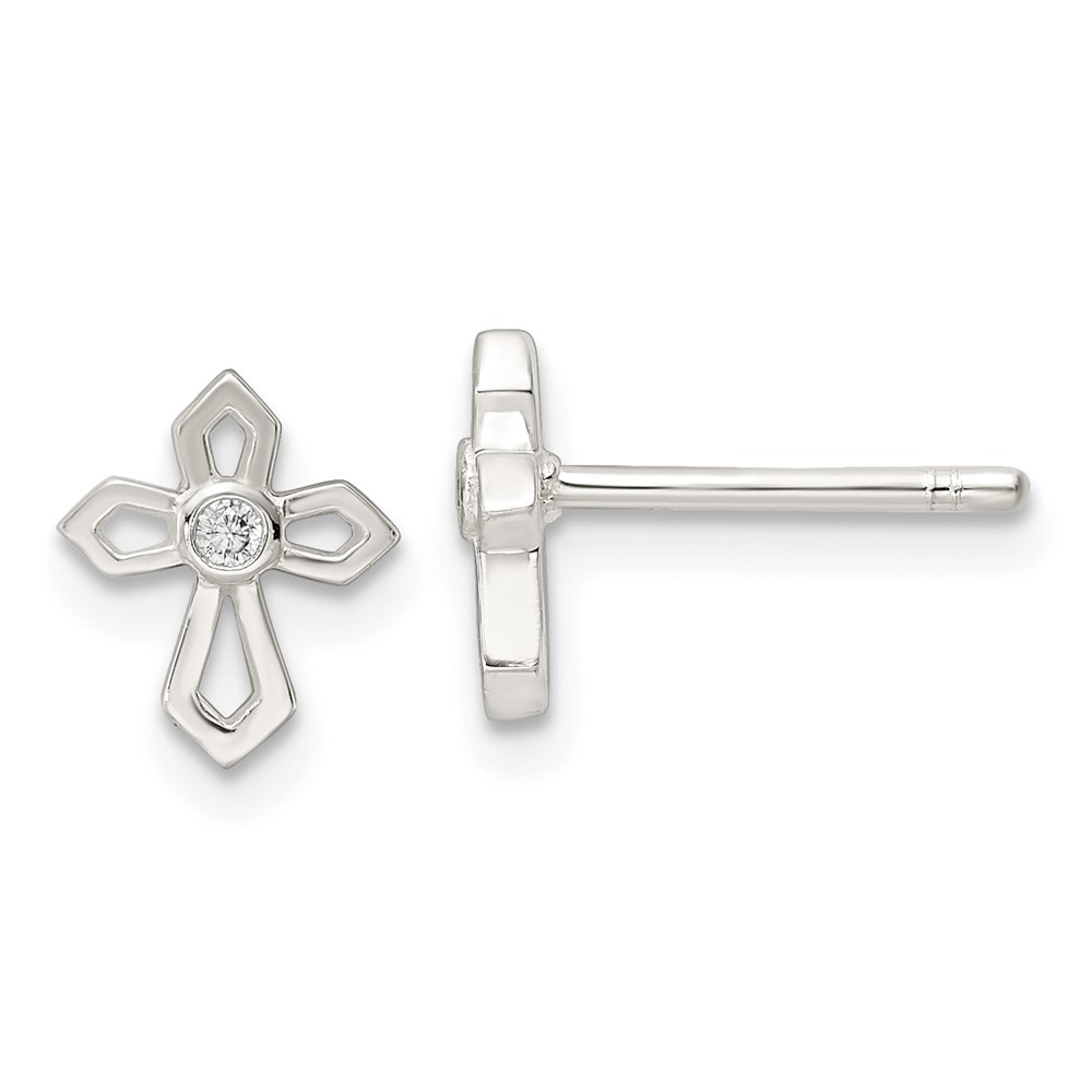 Sterling Silver Polished CZ Passion Cross Post Earrings