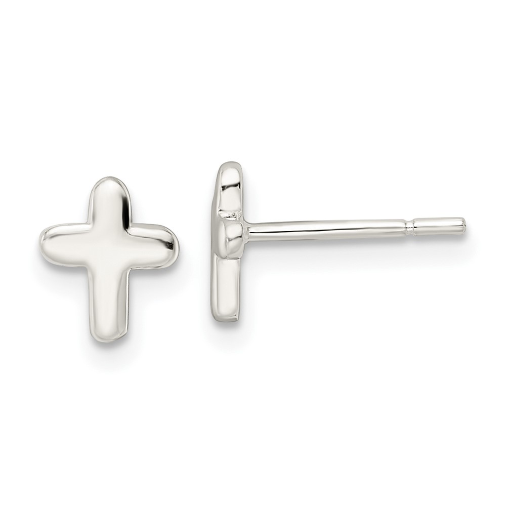 Sterling Silver Rhodium-plated Polished White Enameled Cat Children's Post Earrings