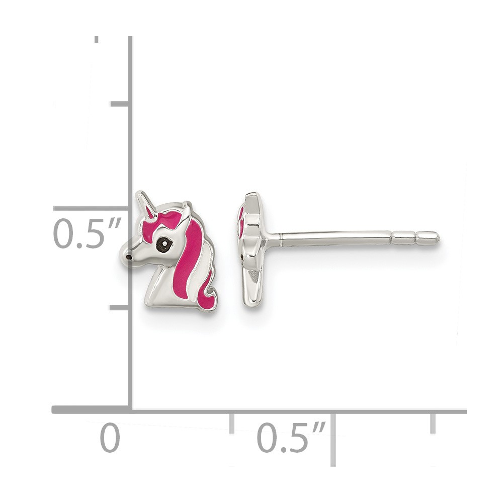 Sterling Silver Polished Multi-color Enameled Unicorn Head Children's Post Earrings