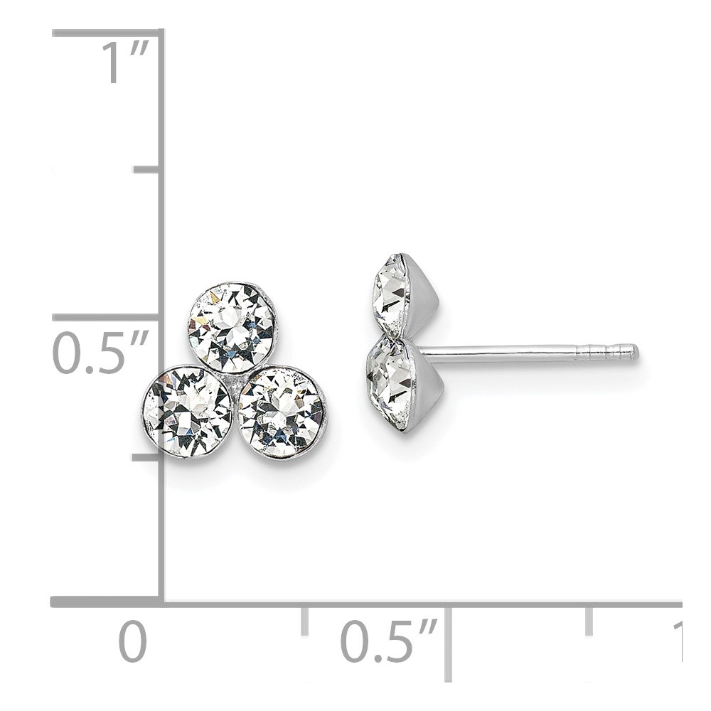 Sterling Silver RH-plated Crystal 3-stone Post Earrings