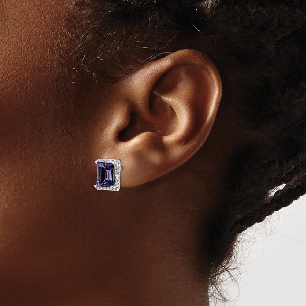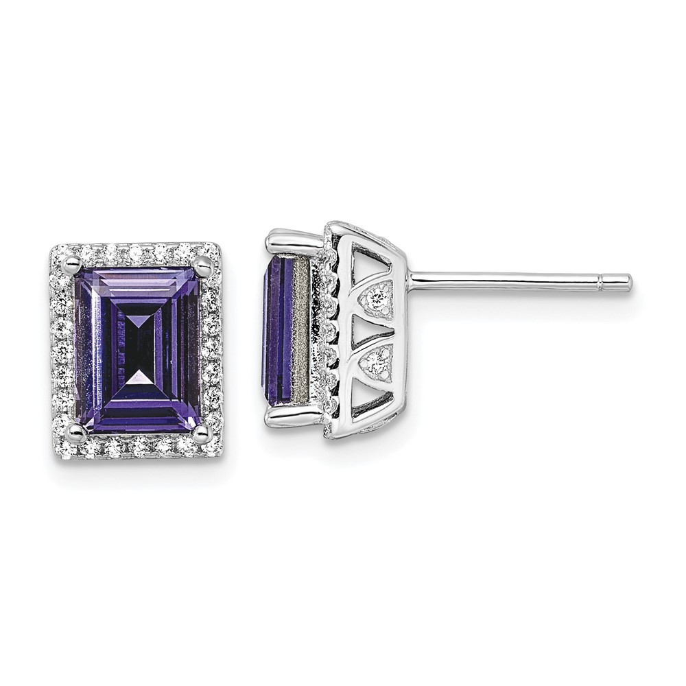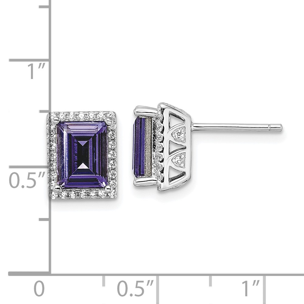 Sterling Silver Rhodium-plated CZ & Purple Crystal Post Earrings