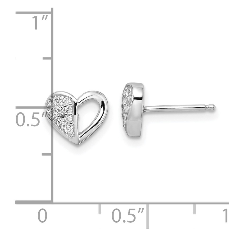 Sterling Silver Rhodium-plated CZ Heart Post Earrings