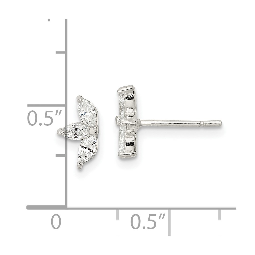 Sterling Silver Polished Marquise CZ Flower Post Earrings