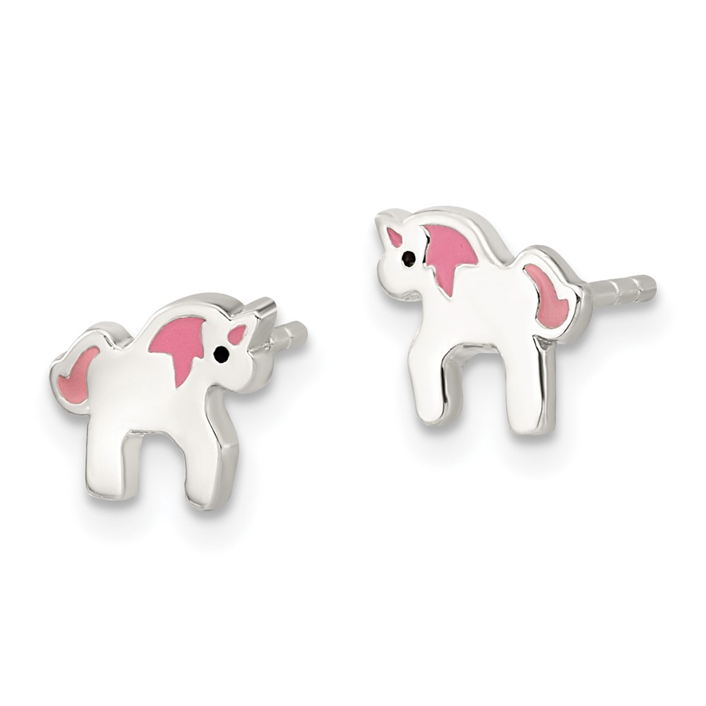 Sterling Silver Polished Multi-color Enameled Unicorn Children's Post Earrings