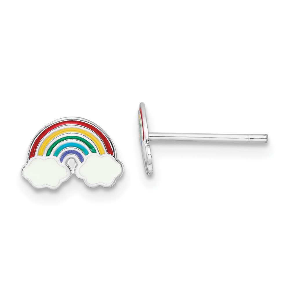 Sterling Silver Rhodium-plated Polished & Multi-color Enameled Rainbow Children's Post Earrings