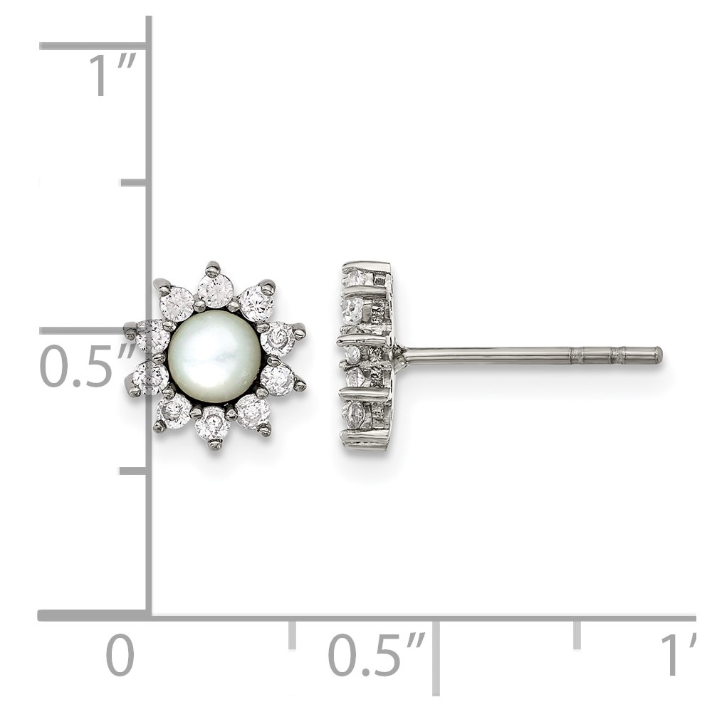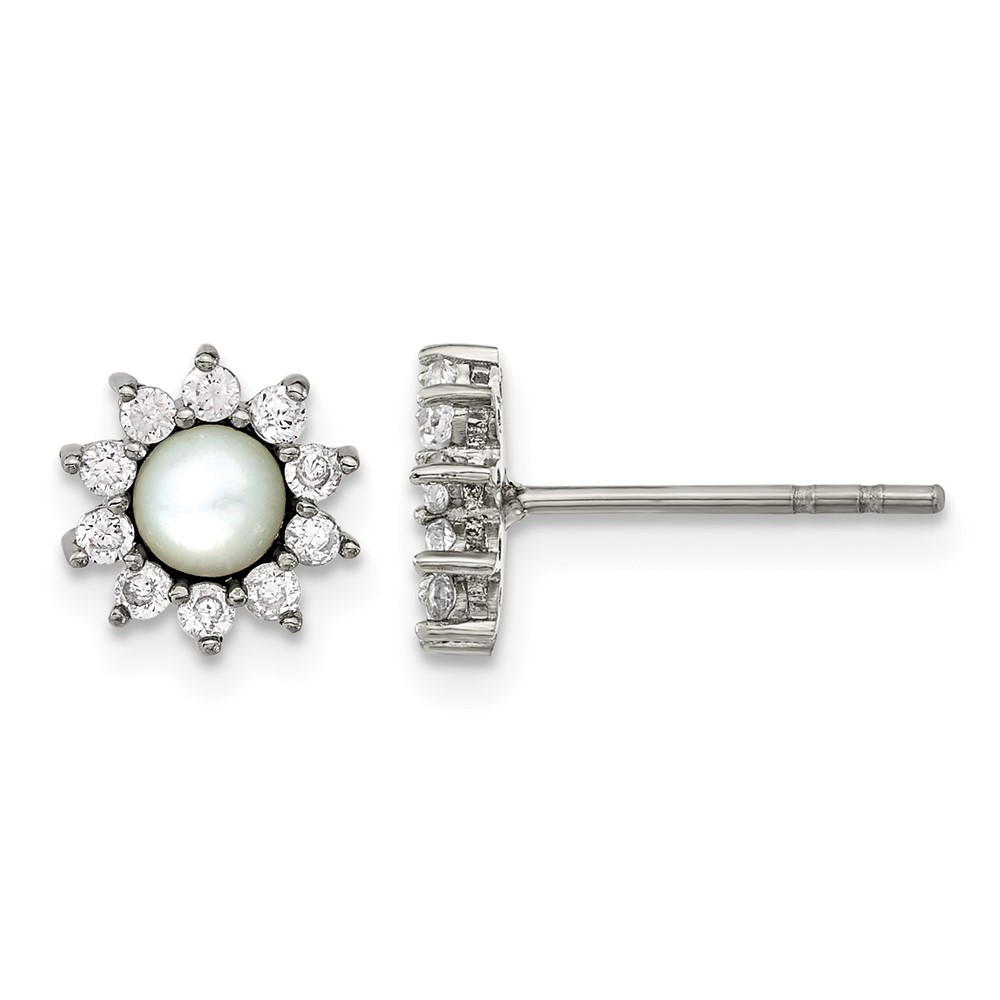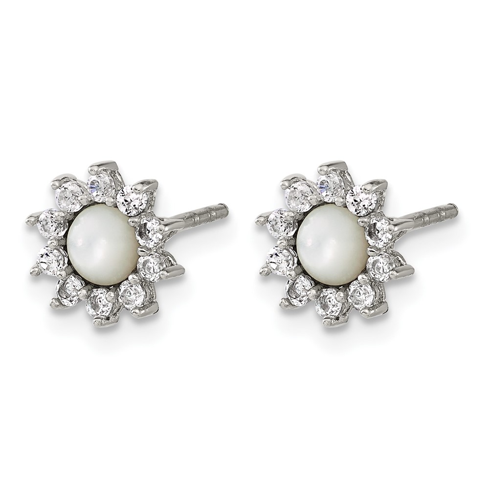 Chisel Stainless Steel Polished Mother of Pearl and CZ Post Earrings