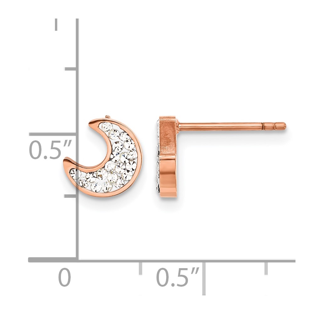 Chisel Stainless Steel Polished Rose IP-plated Preciosa Crystal Half Moon Post Earrings