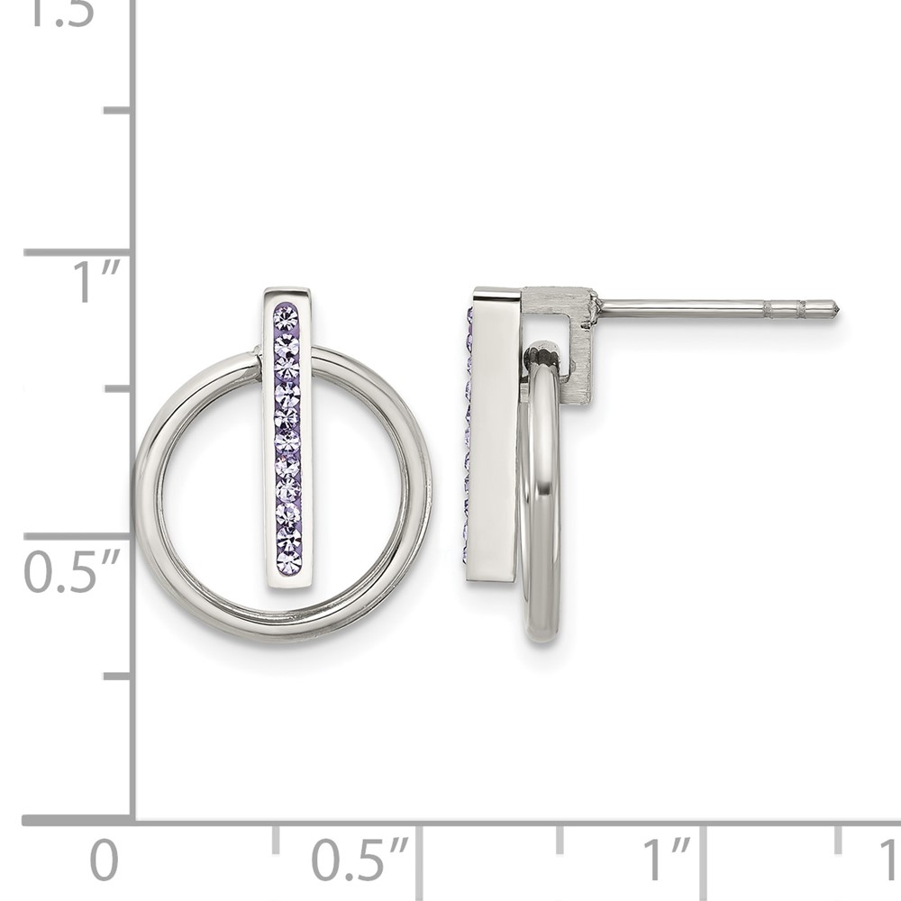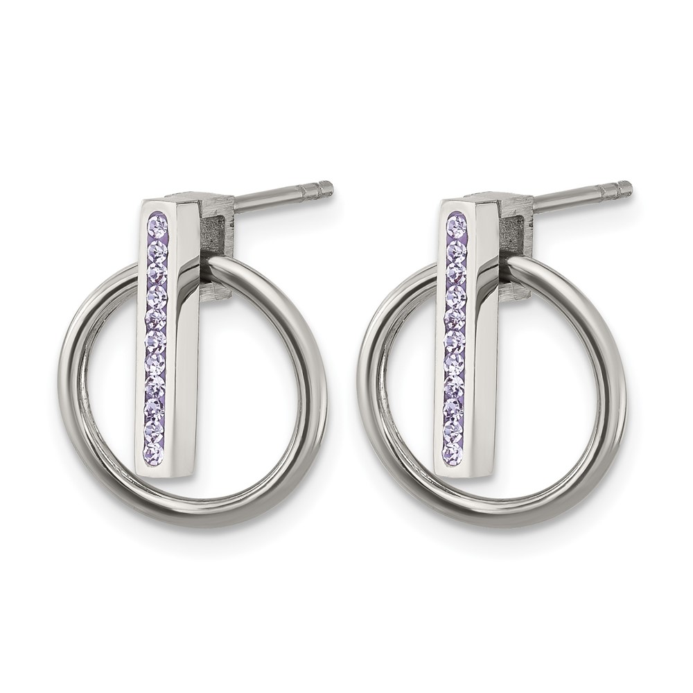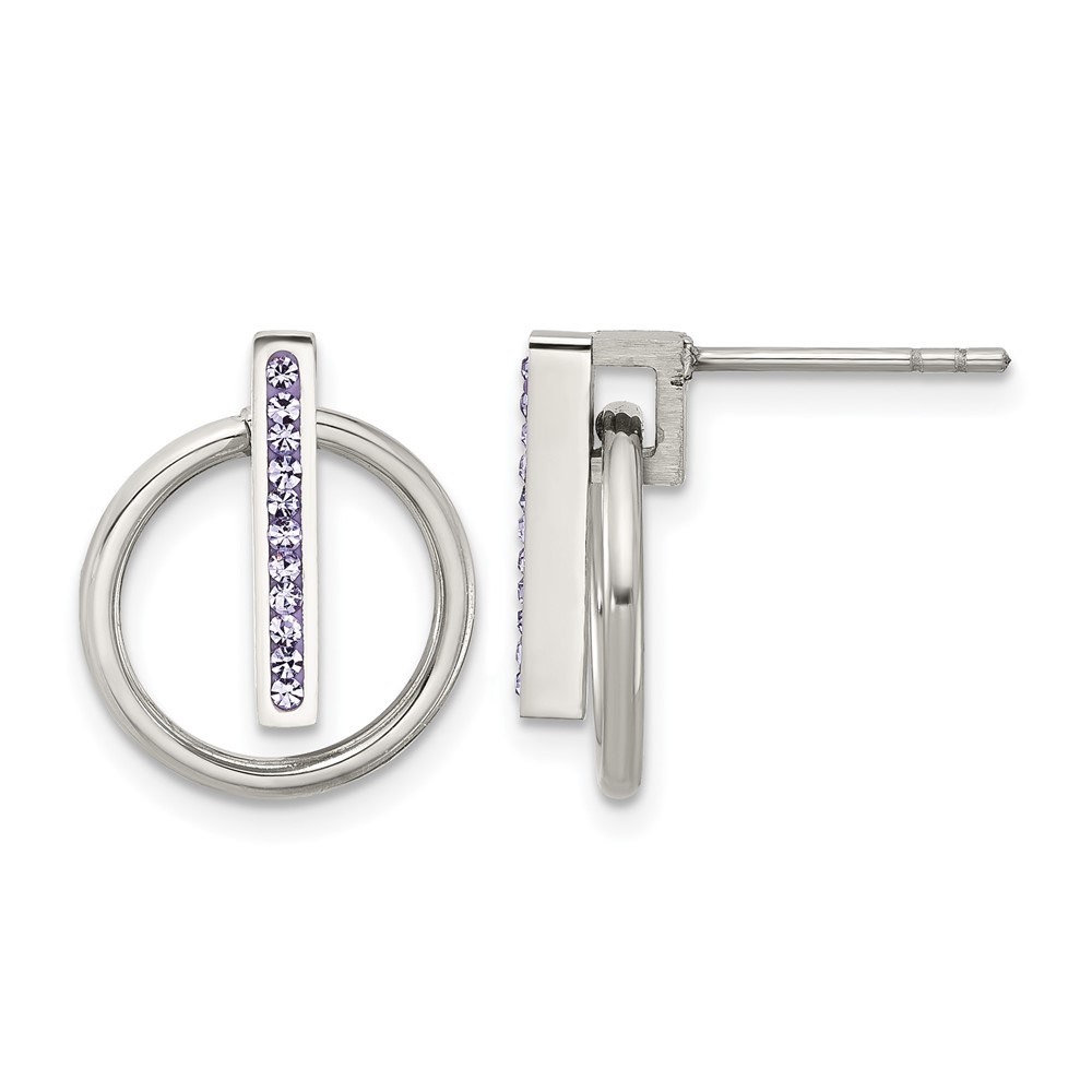Chisel Stainless Steel Polished with Purple Preciosa Crystal Post Dangle Earrings