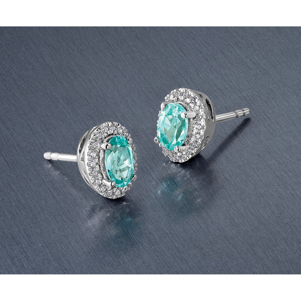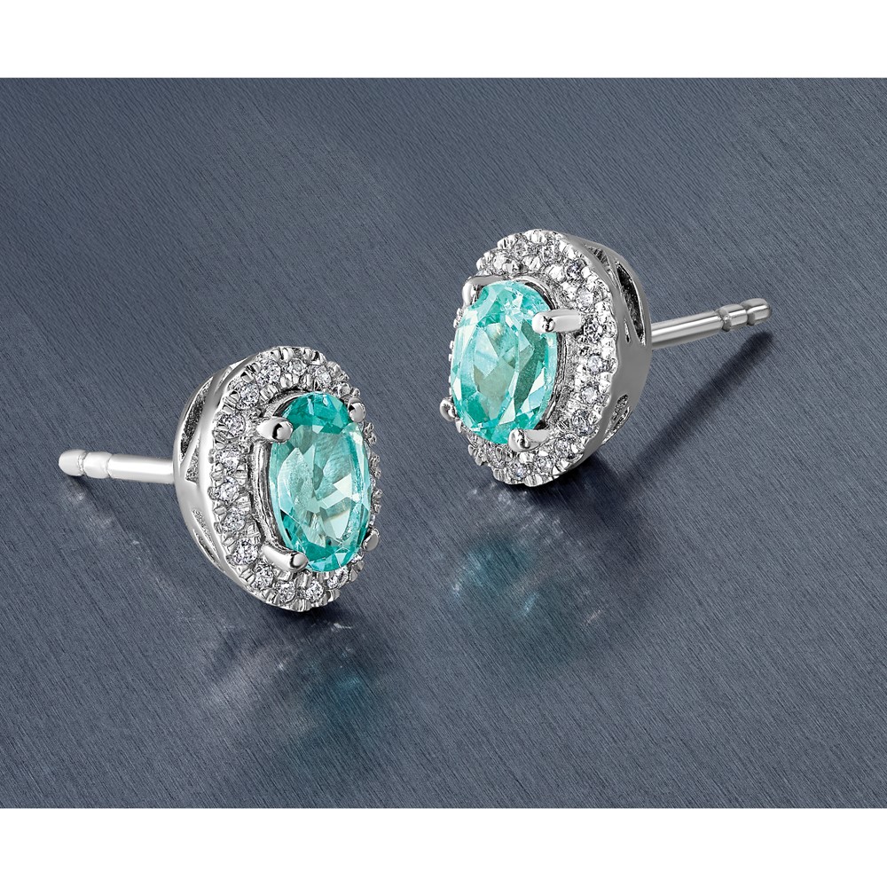 Pure Serenity 14k White Gold 1/10 carat Lab Grown Diamond VS/SI+ G+ and Lab Created Paraiba Post Earrings