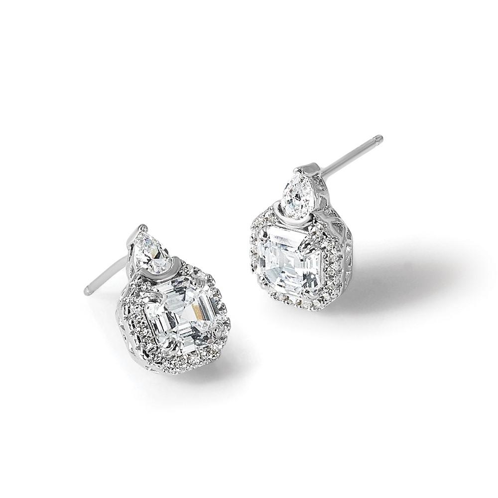 Sterling Shimmer Sterling Silver Rhodium-plated CZ 38 Stone Teardrop Post Earrings