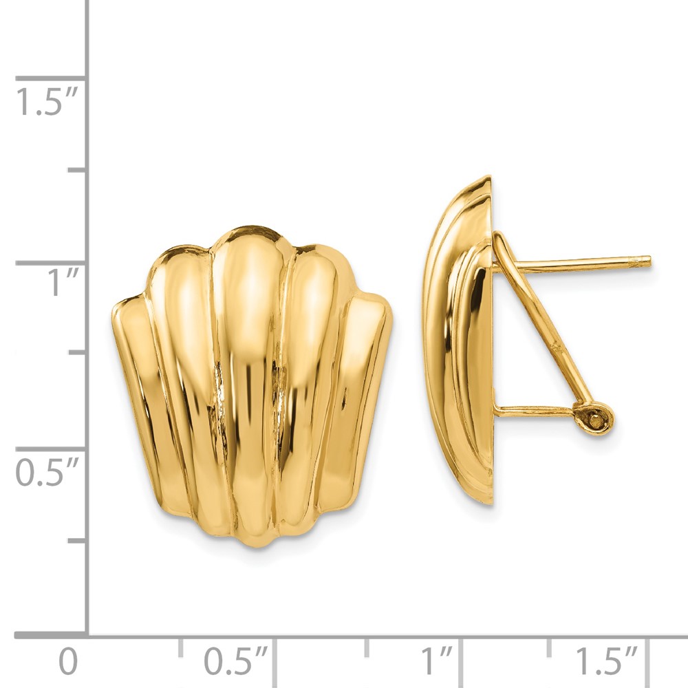 14k Polished Fancy Ribbed Omega Back Post Earrings