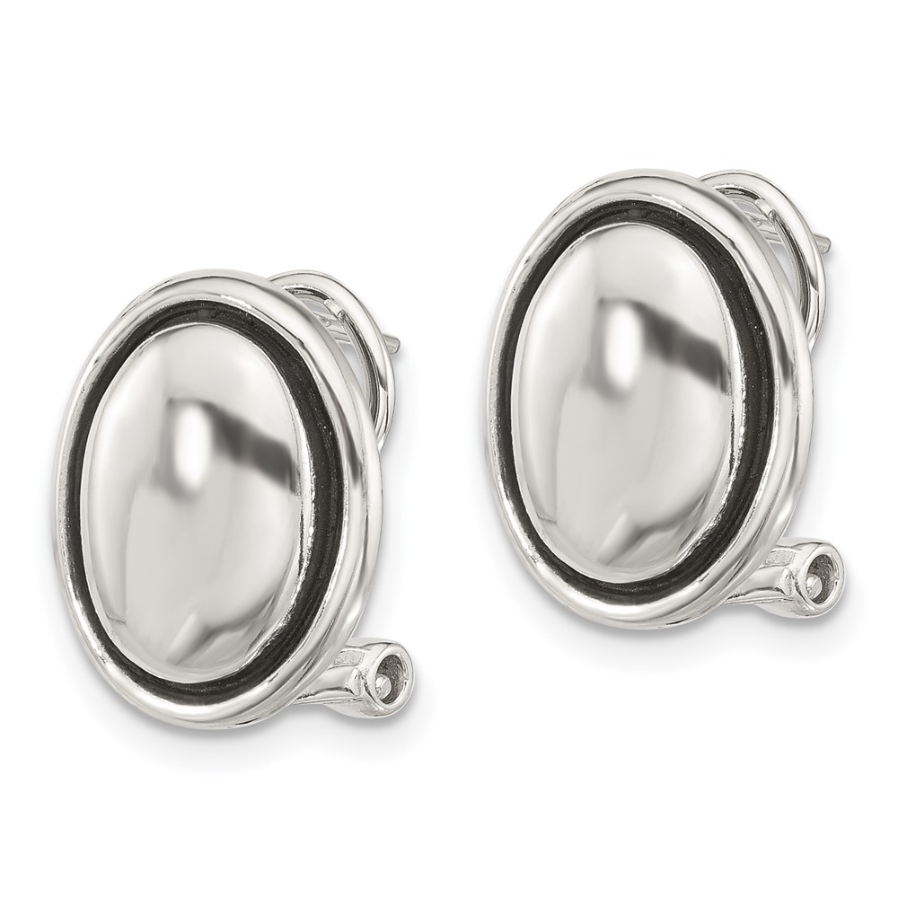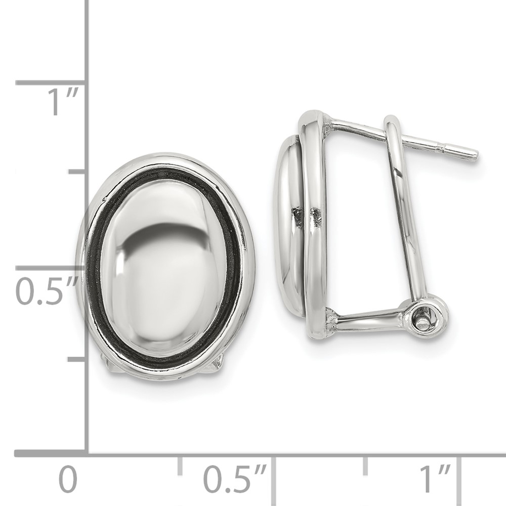 Sterling Silver Polished and Antiqued Oval Omega Back Earrings