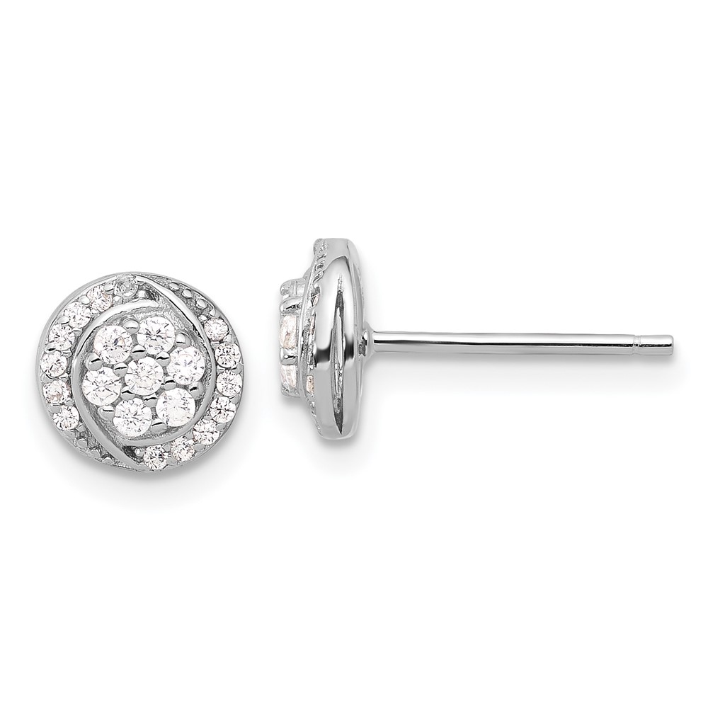 Sterling Silver Rhodium-plated Polished Cluster Pavé CZ Post Earrings