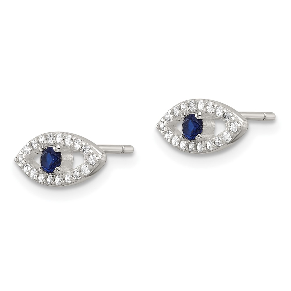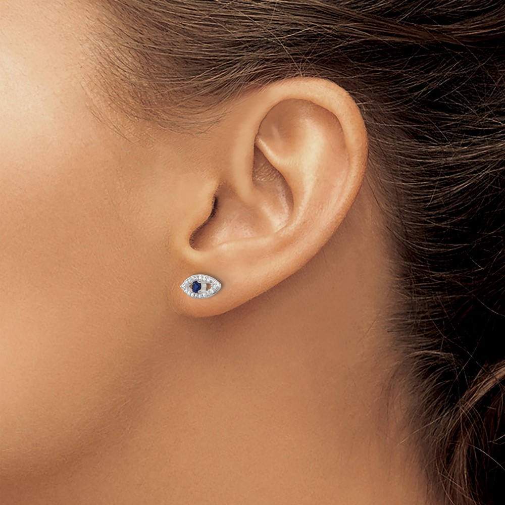 Sterling Silver E-Coating Polished Blue & White CZ Evil Eye Post Earrings