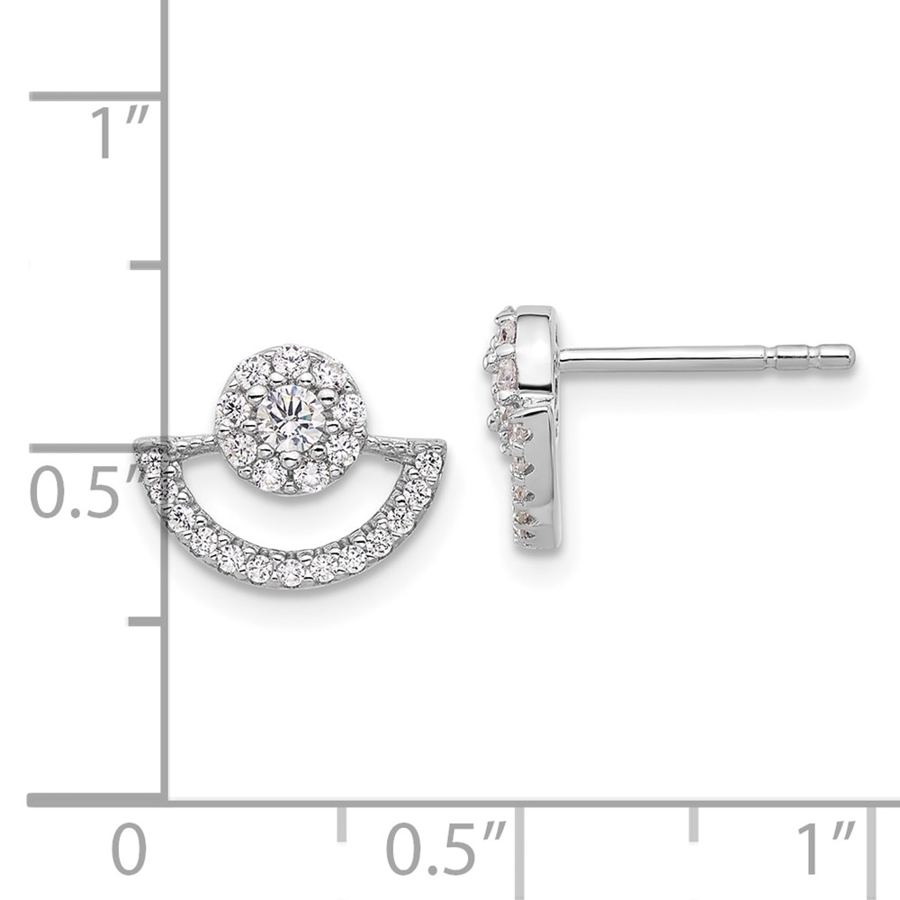 Pure Fire Sterling Silver Rhod-plated Fancy Half Circle Halo CZ Post Earrin