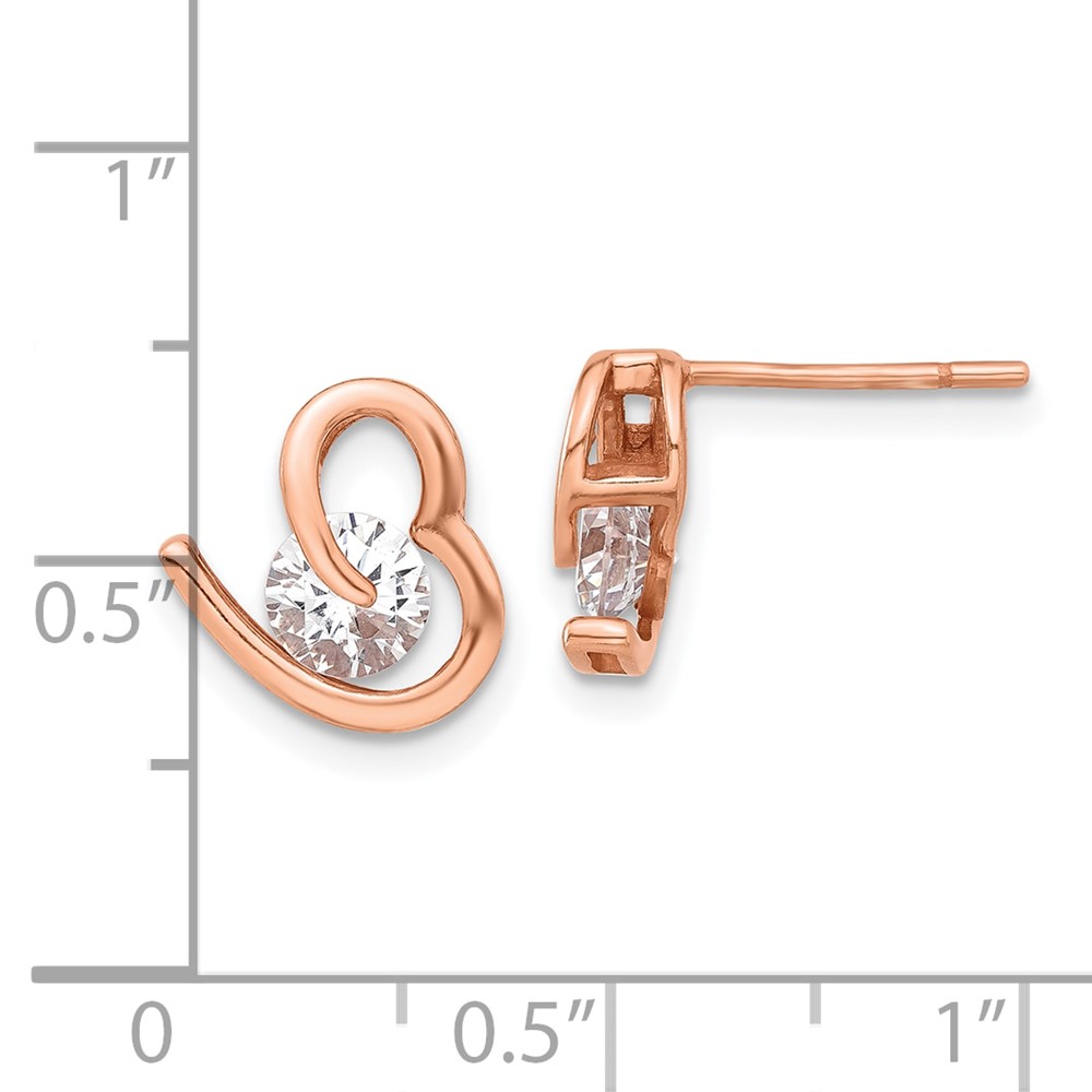 Sterling Silver Rose-tone Heart and CZ Post Earrings