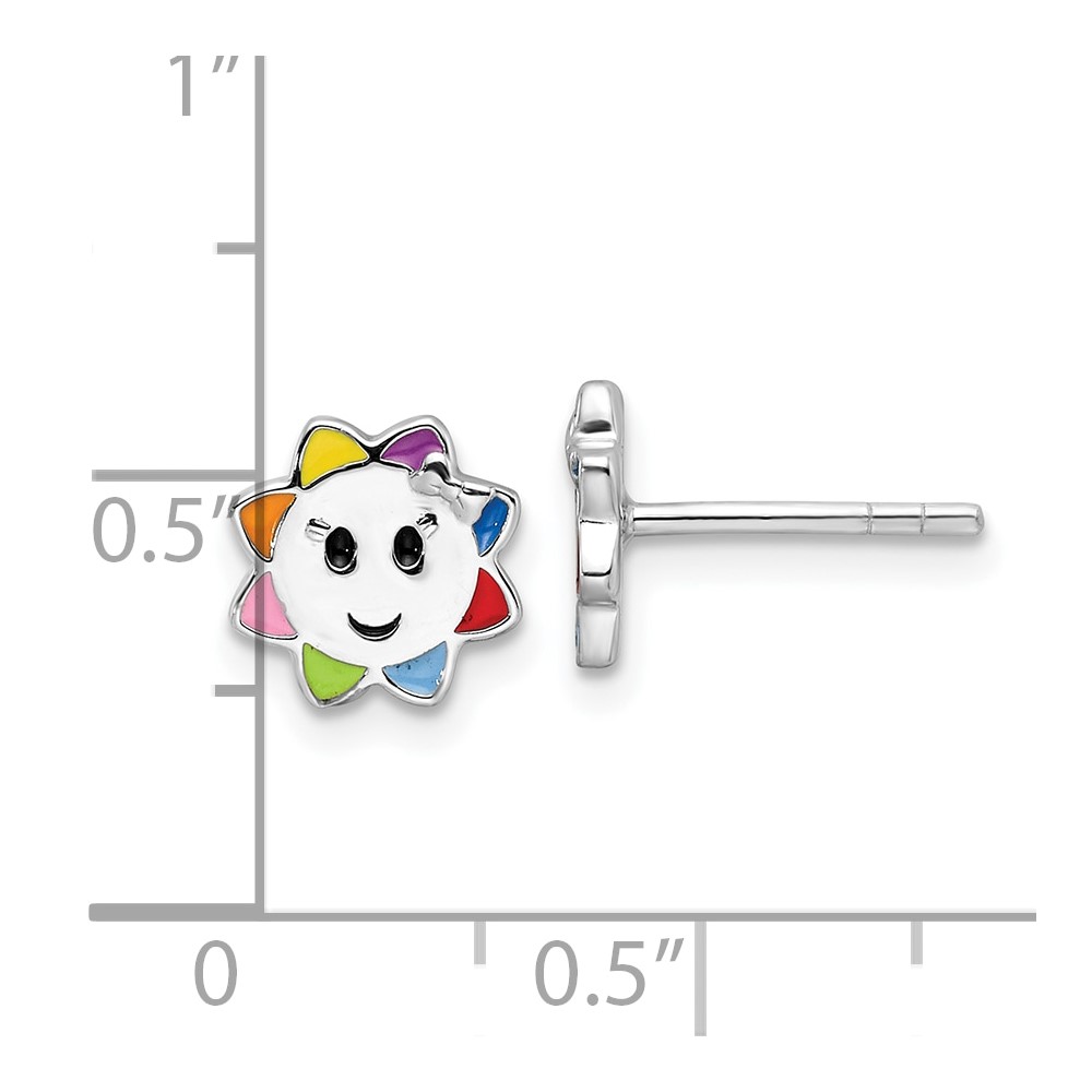 Sterling Silver RH-plated Multicolor Enameled Sun Children's Post Earrings