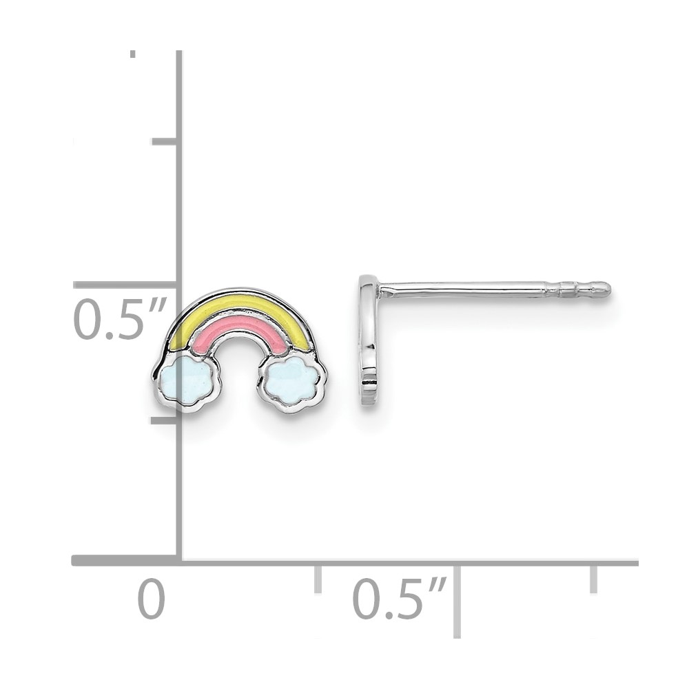 Sterling Silver Rhodium-plated Enameled Rainbow Children's Post Earrings