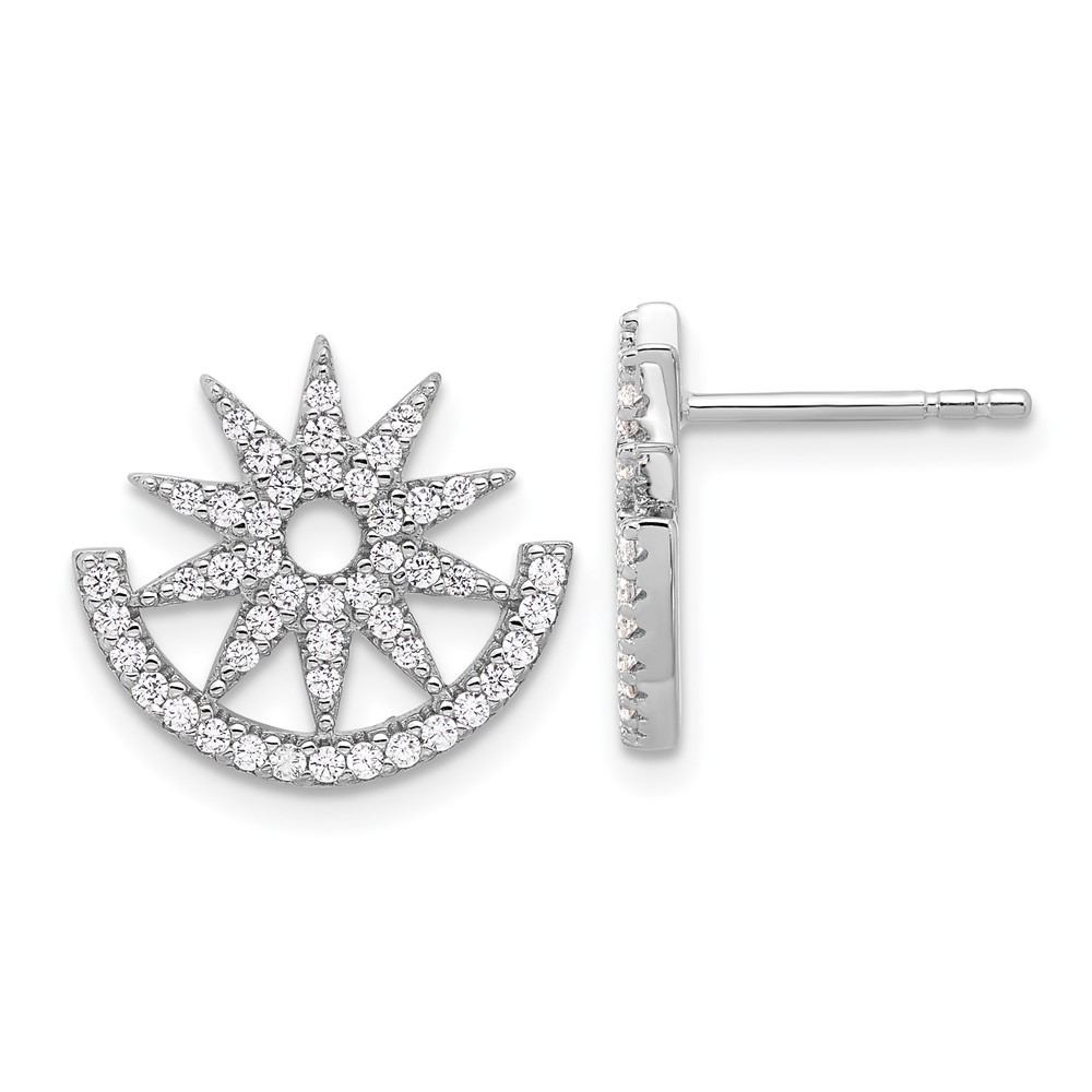 Pure Fire Sterling Silver Rhod-plated CZ Fancy Half Circle Star Post Earrin