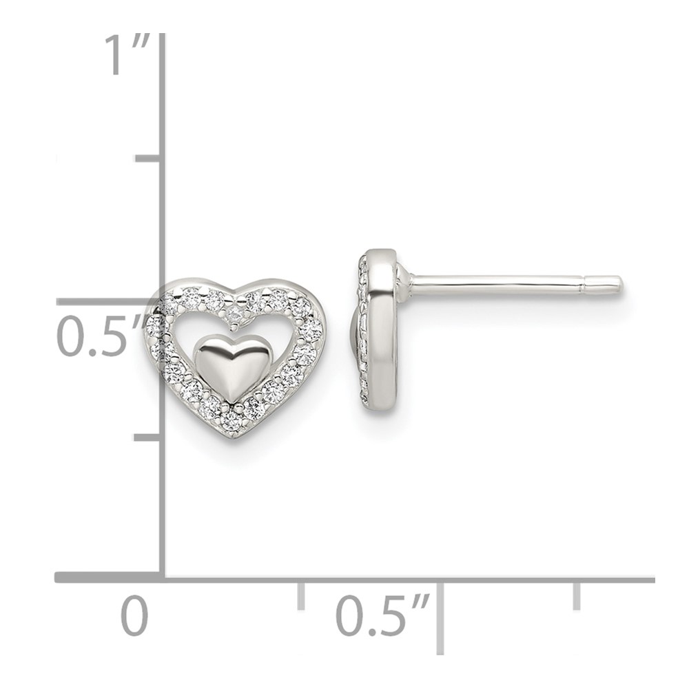 Sterling Silver E-Coating CZ Heart in a Heart Earrings
