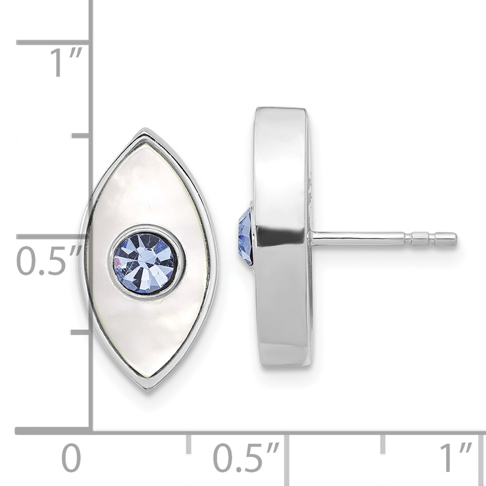 Sterling Silver RH-plated Polished MOP & Blue Crystal Evil Eye Post Earring