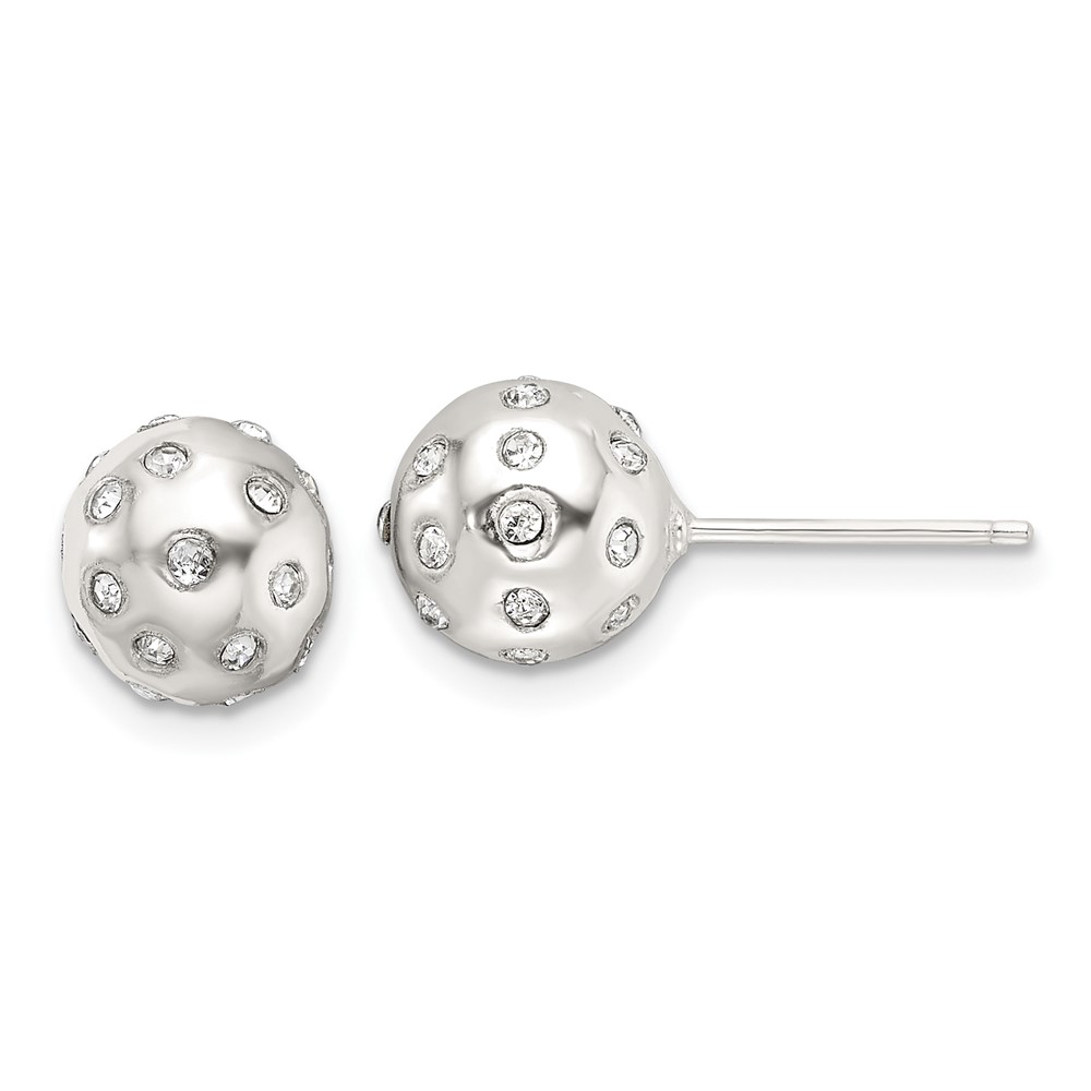 Sterling Silver RH-plated Black Spinel/Created White Sapphire Post Earrings