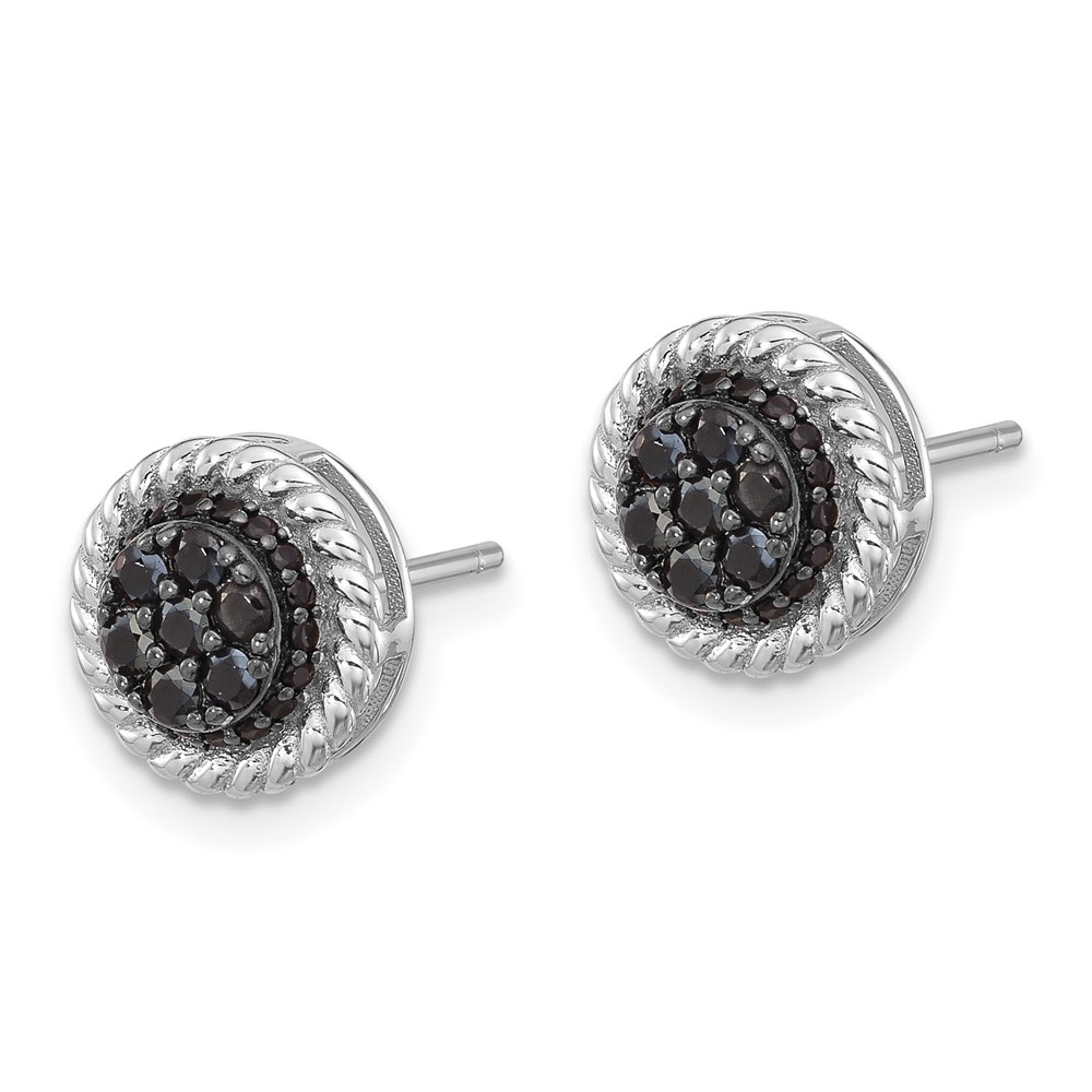 Sterling Silver RH-plated Polished/Twisted Black Spinel Circle Post Earring