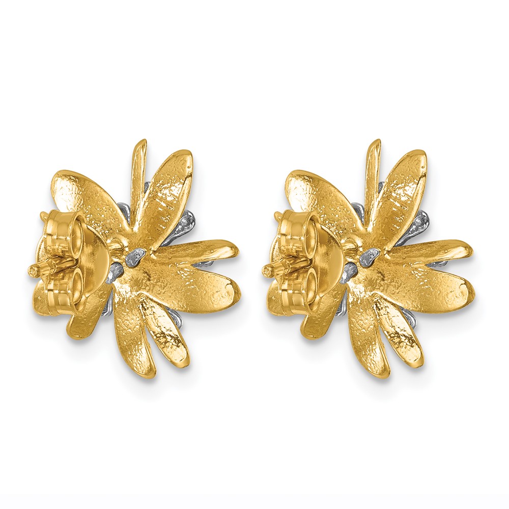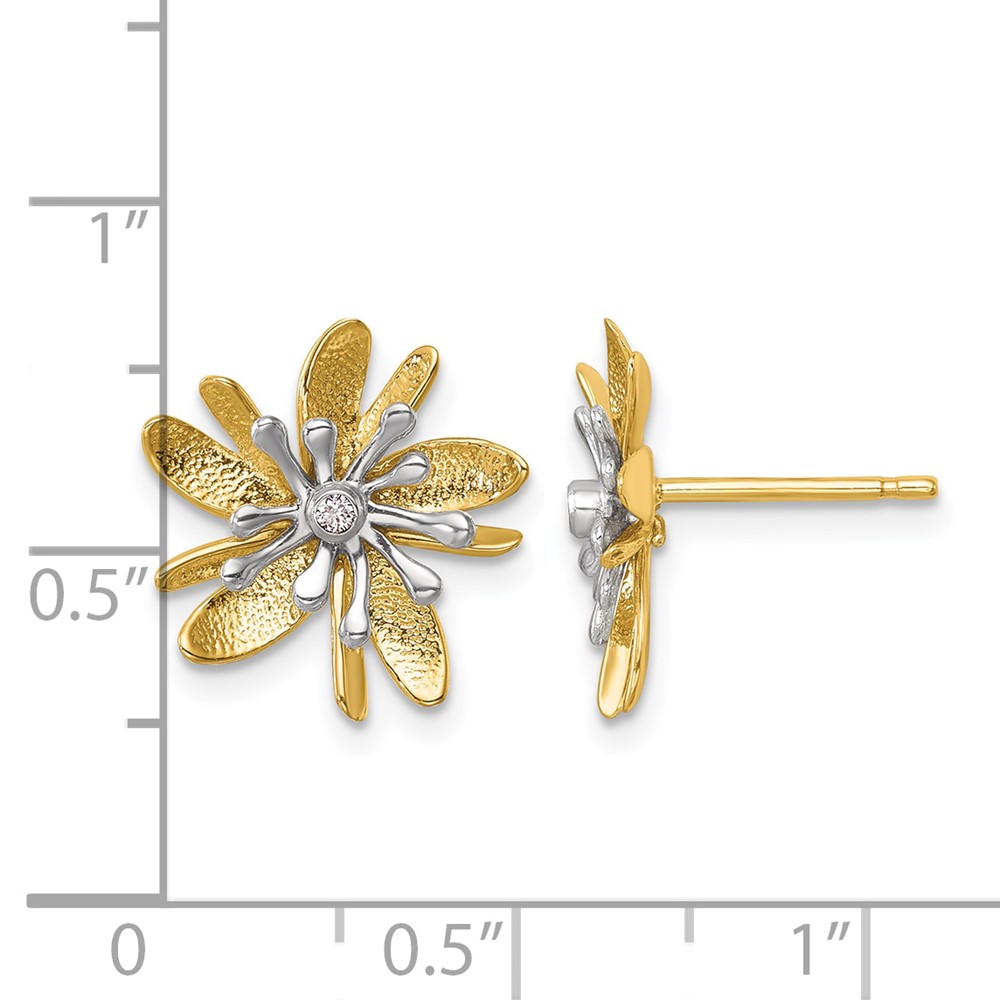 Herco 14K Two-tone Polished and Textured Diamond Flower Post Earrings