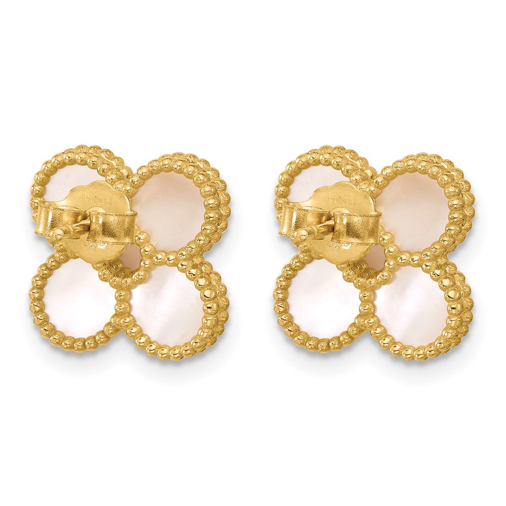 Herco 14K Polished and Beaded Mother of Pearl Flower Post Earrings