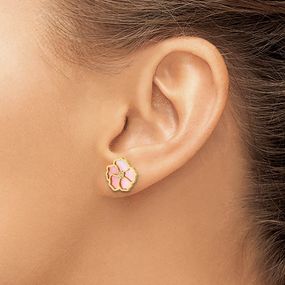 Herco 14K Polished and Beaded Pink Mother of Pearl Flower Post Earrings