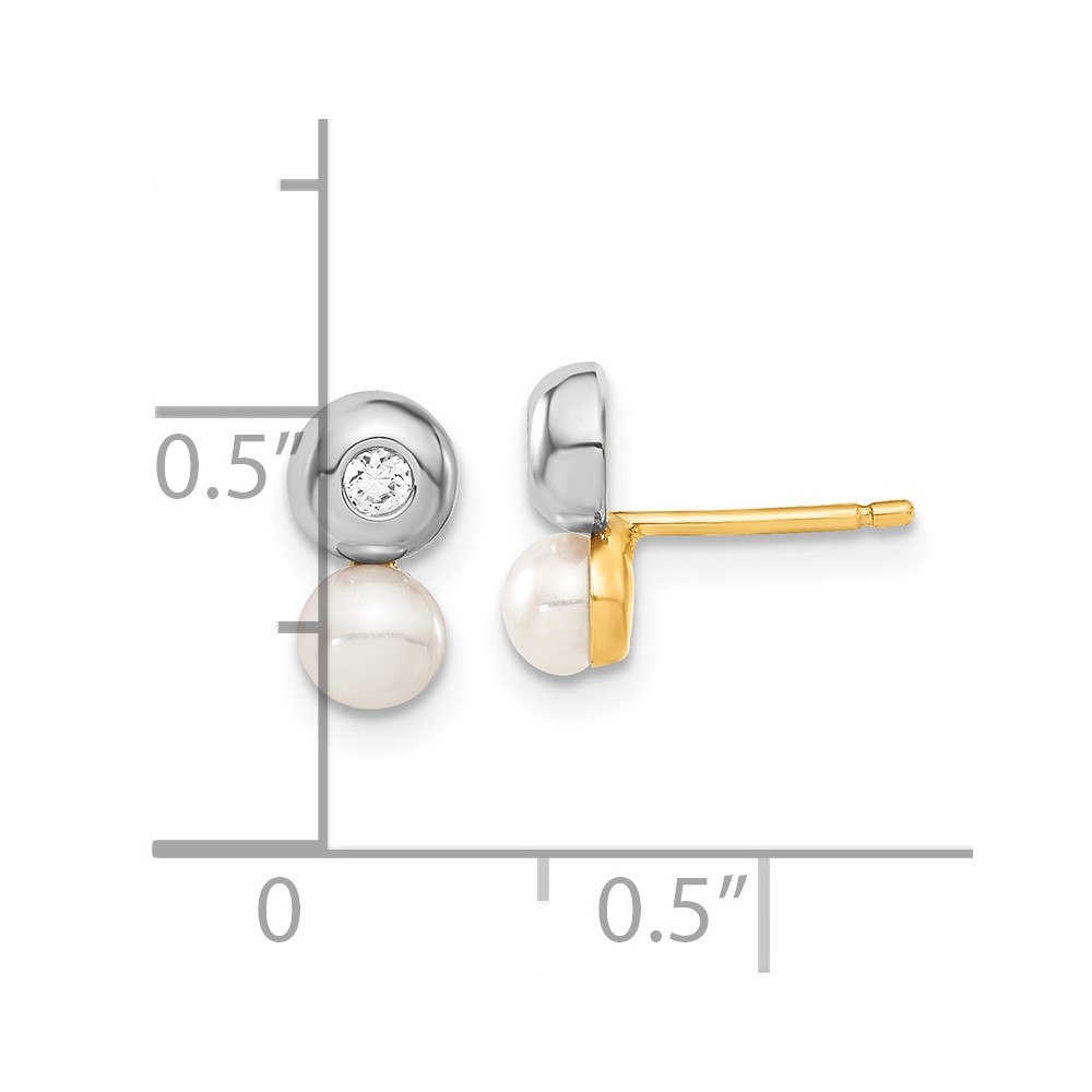 14ky & White Rhodium-plated Freshwater Cultured Pearl & CZ Earrings