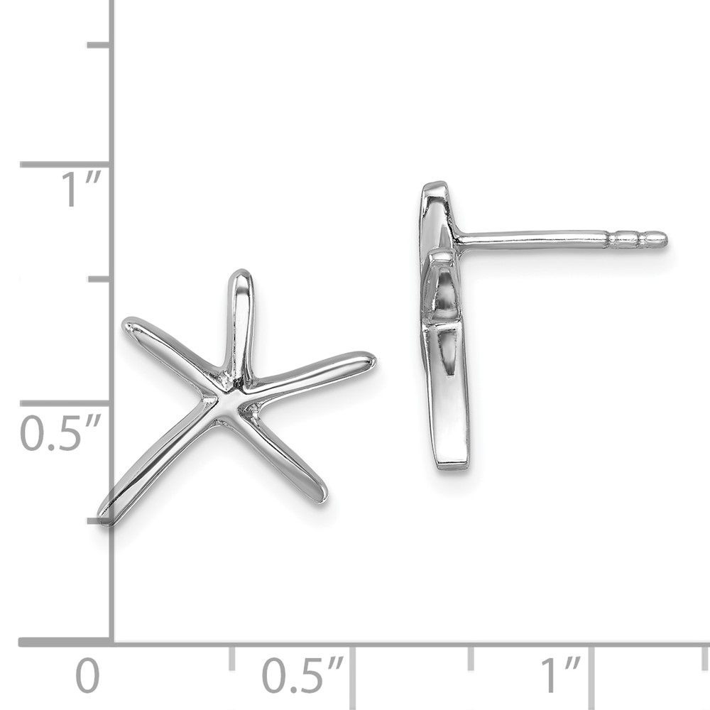 Sterling Silver Rhodium-plated Polished Starfish Post Earring
