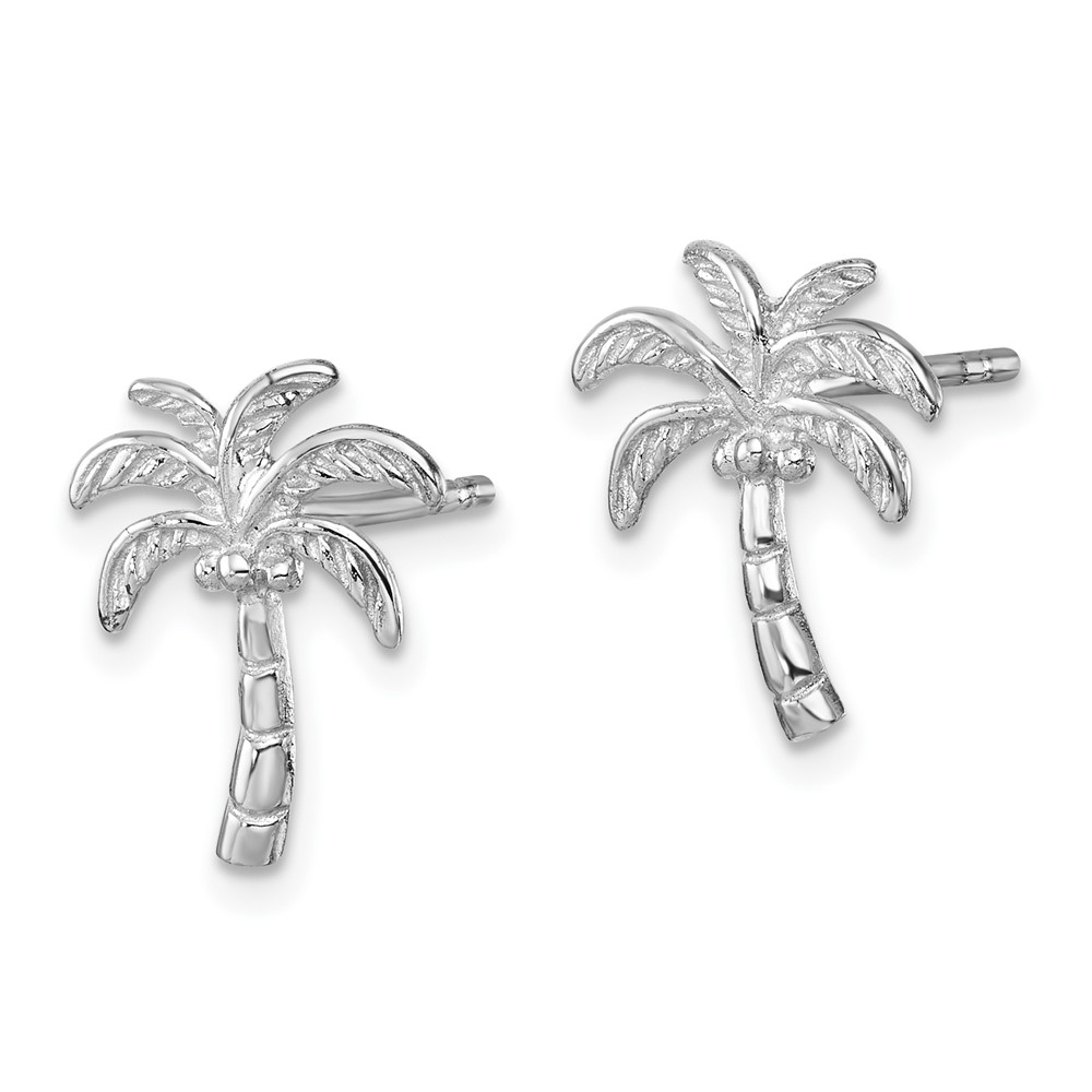 Sterling Silver Rhodium-plated Polished Palm Tree Post Earring