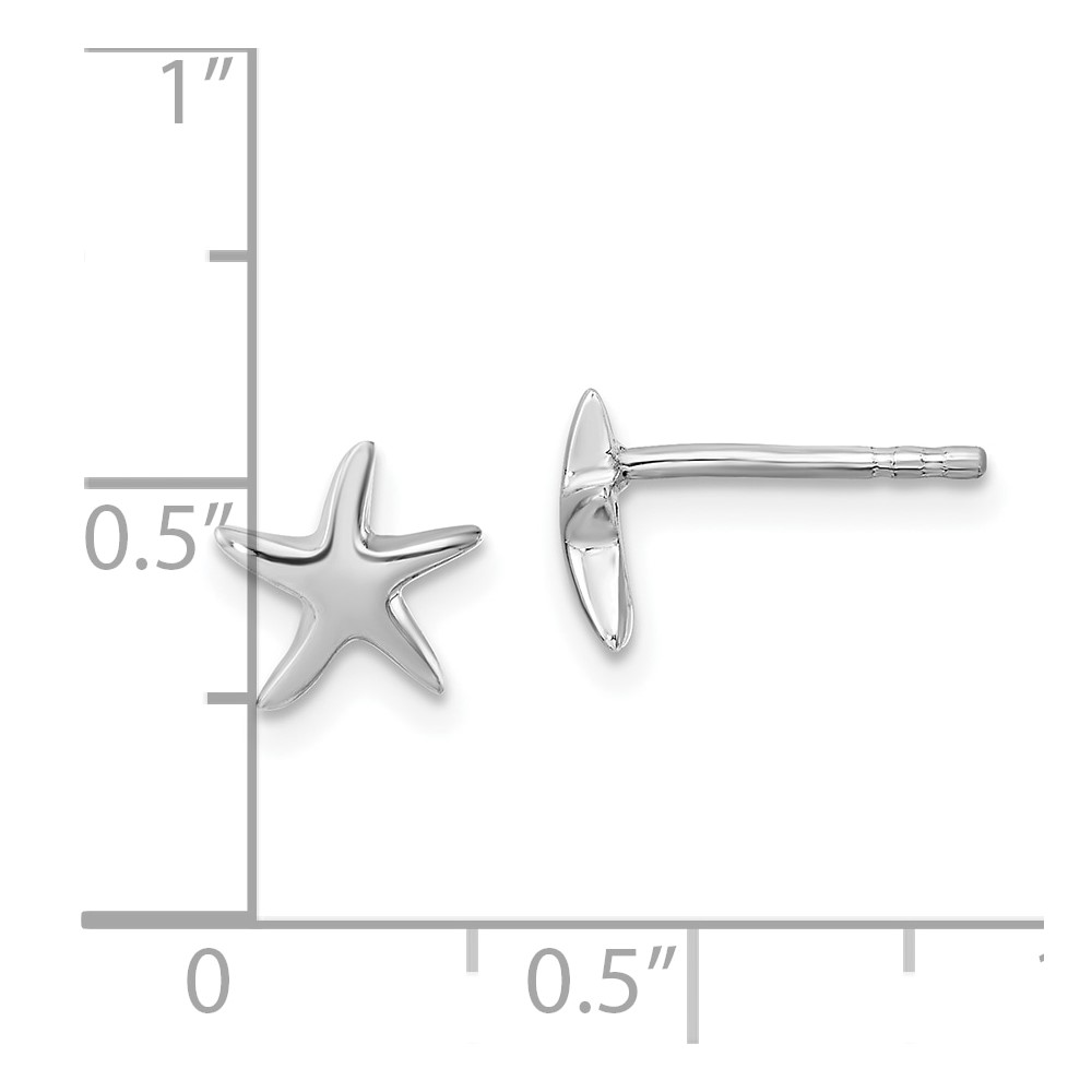 Sterling Silver Rhodium-plated Polished Starfish Post Earring