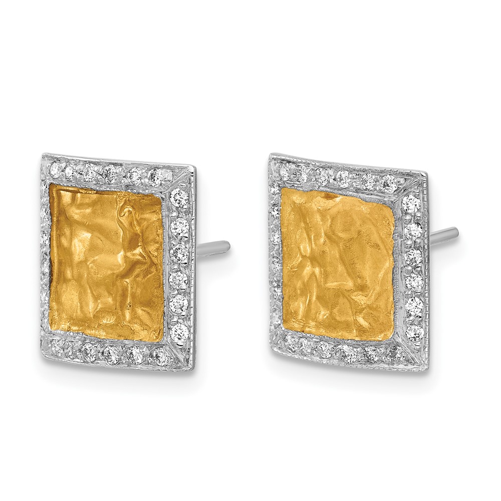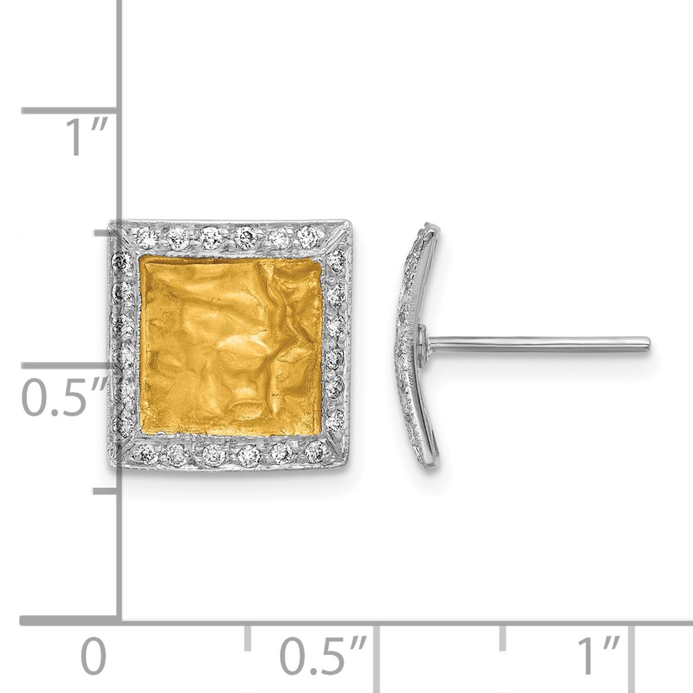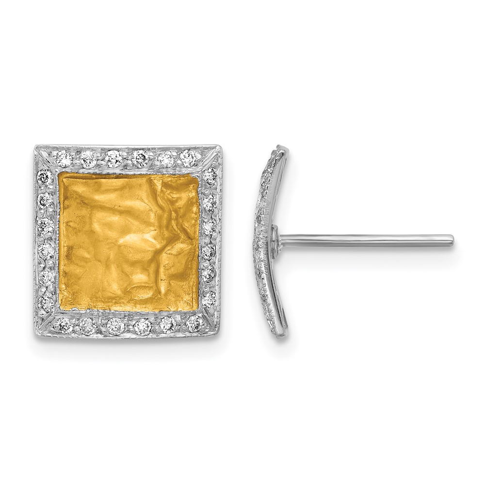Herco 18K Two-tone with 24k Accent Polished and Satin Textured Diamond Square Post Earrings