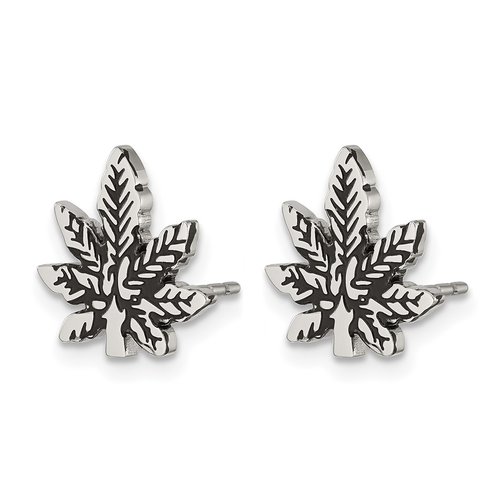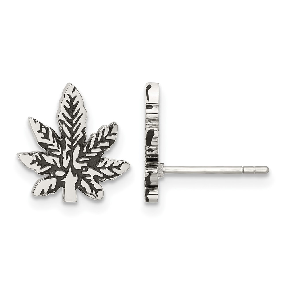 Chisel Stainless Steel Polished and Antiqued Leaf Post Earring
