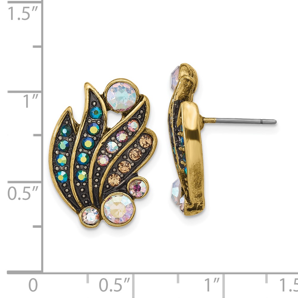 1928 Antique Gold-tone Mirror with Glass Aurora Borealis Stone Petal Post Earrings