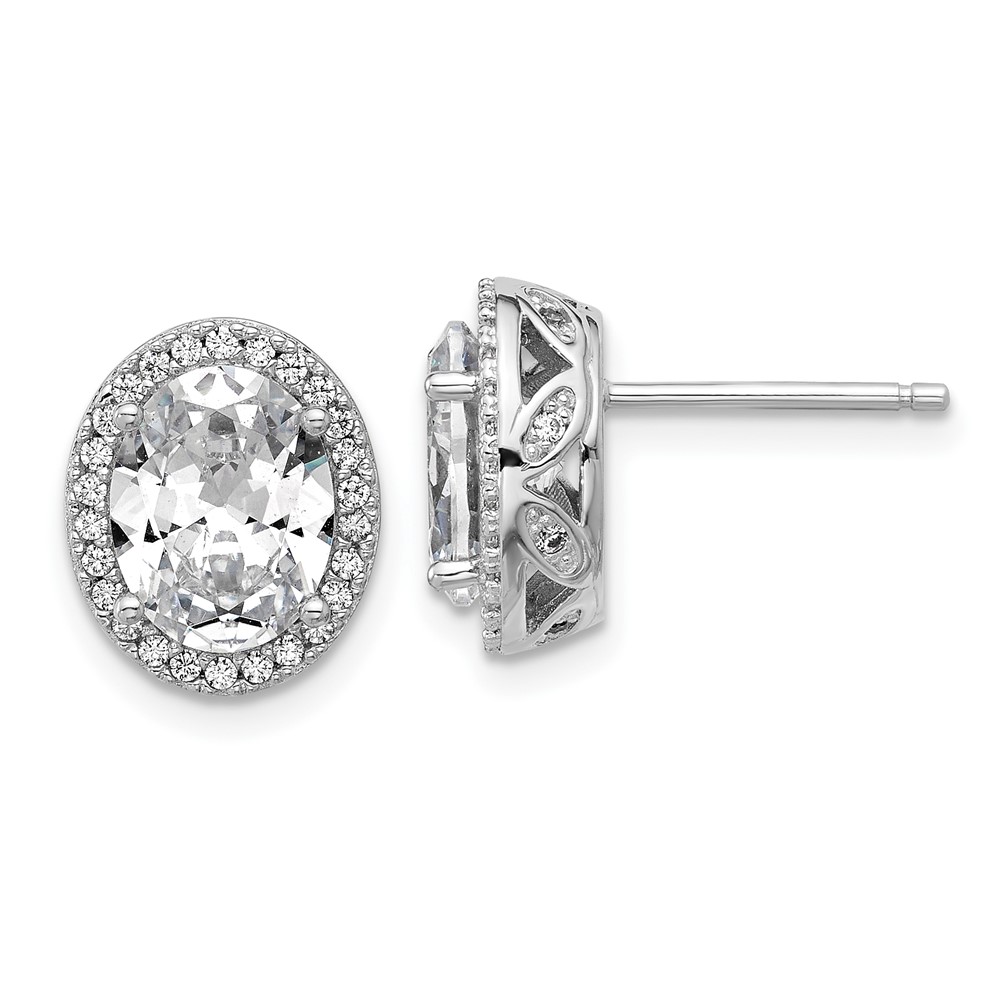 Cheryl M Sterling Silver Rhodium-plated Polished Fancy Oval CZ Halo Post Earrings