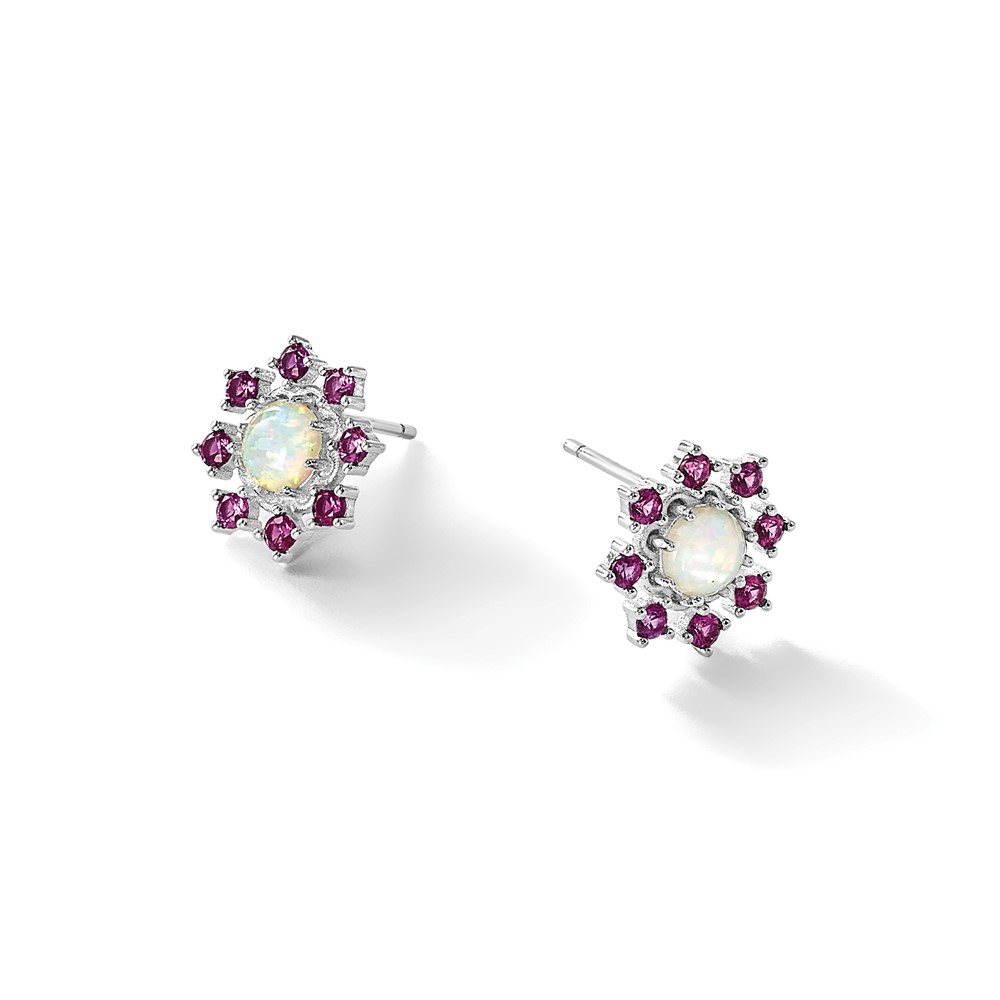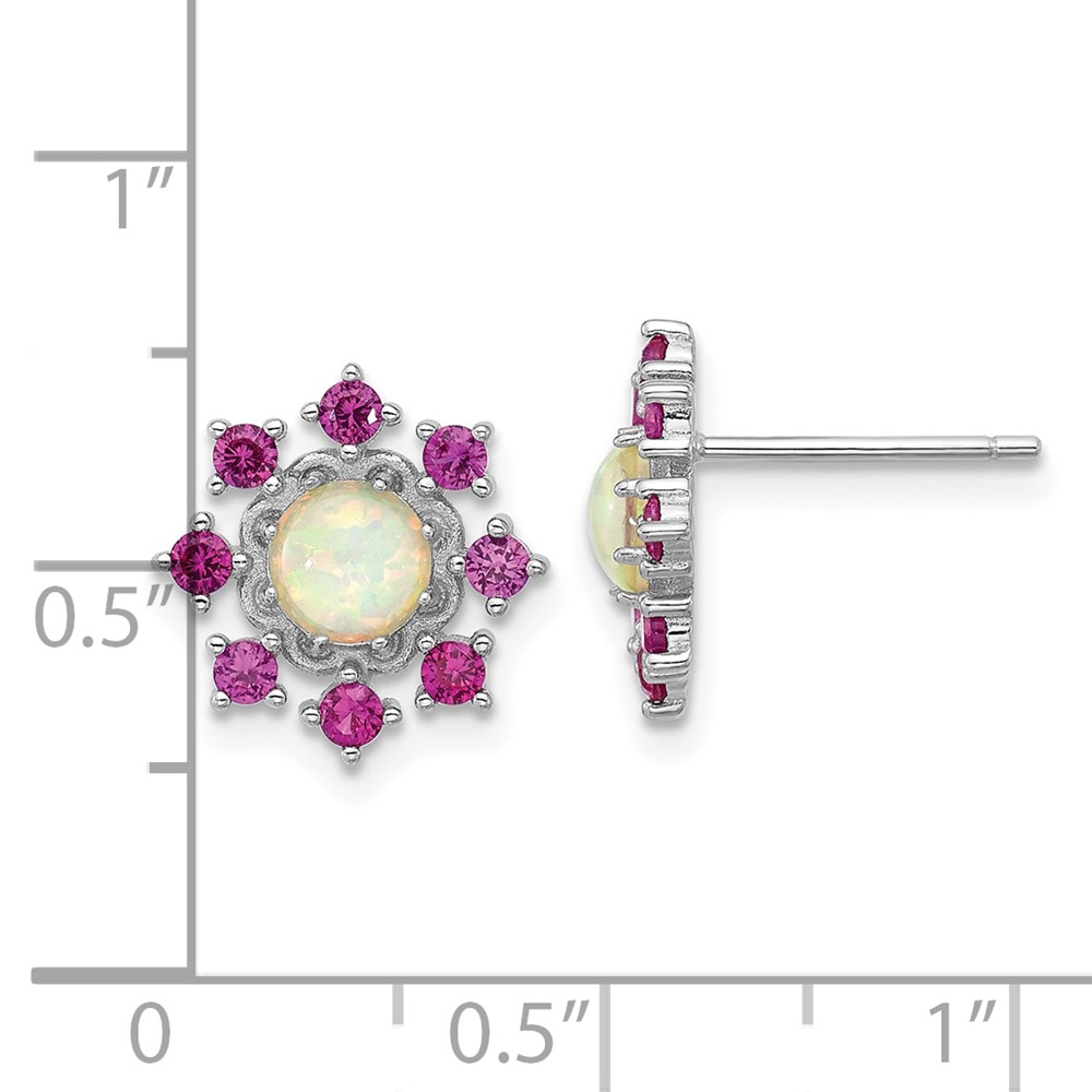 Cheryl M Sterling Silver Rhodium-plated Polished Created Opal and Pink Crystal Flower Post Earrings