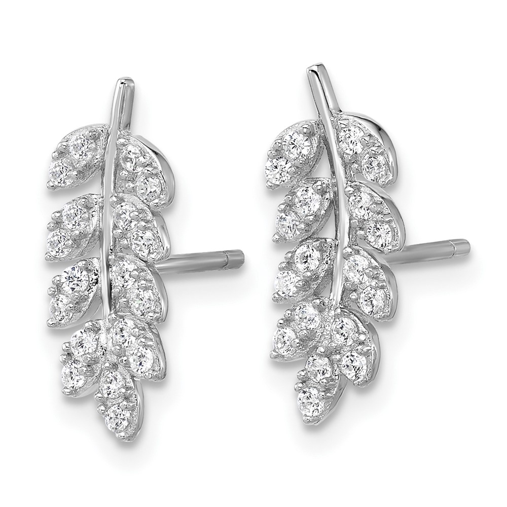 Cheryl M Sterling Silver Rhodium-plated Polished CZ Leaf Post Earrings