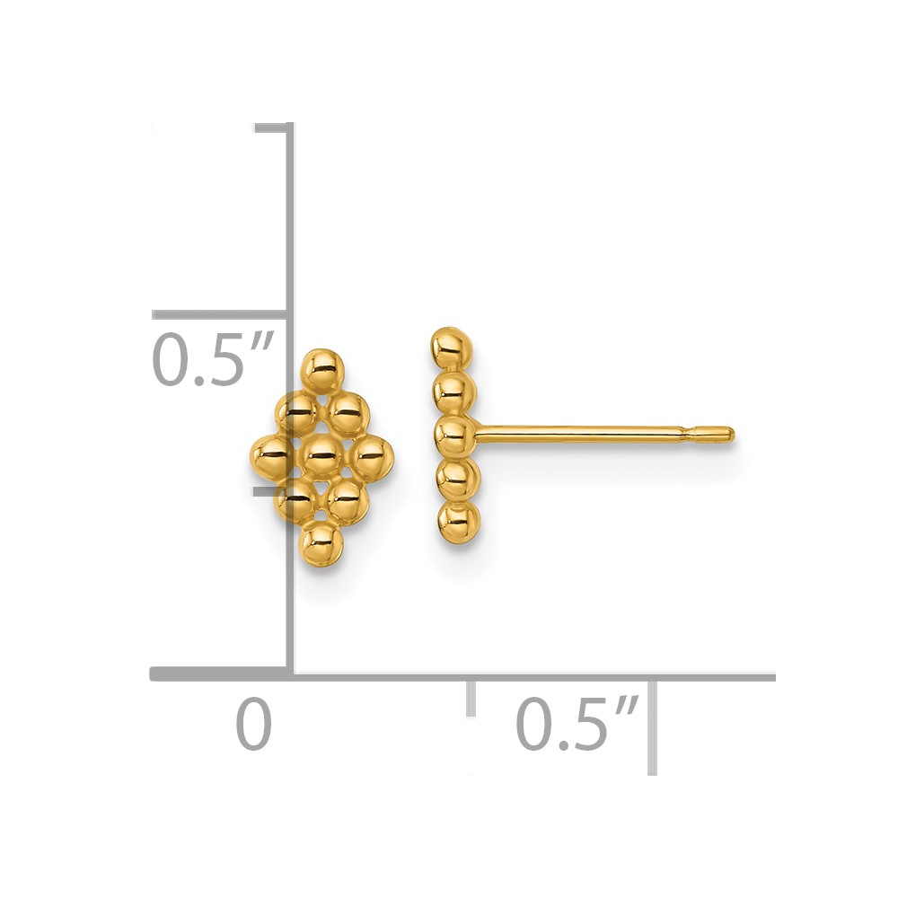 14k Polished and Beaded Diamond-shape Post Earrings