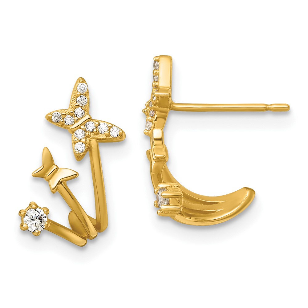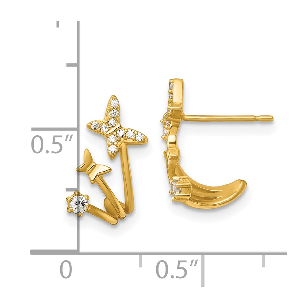 14k Polished CZ Double Butterfly Post Cuff Earrings