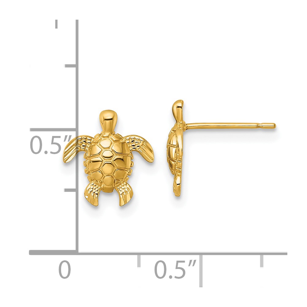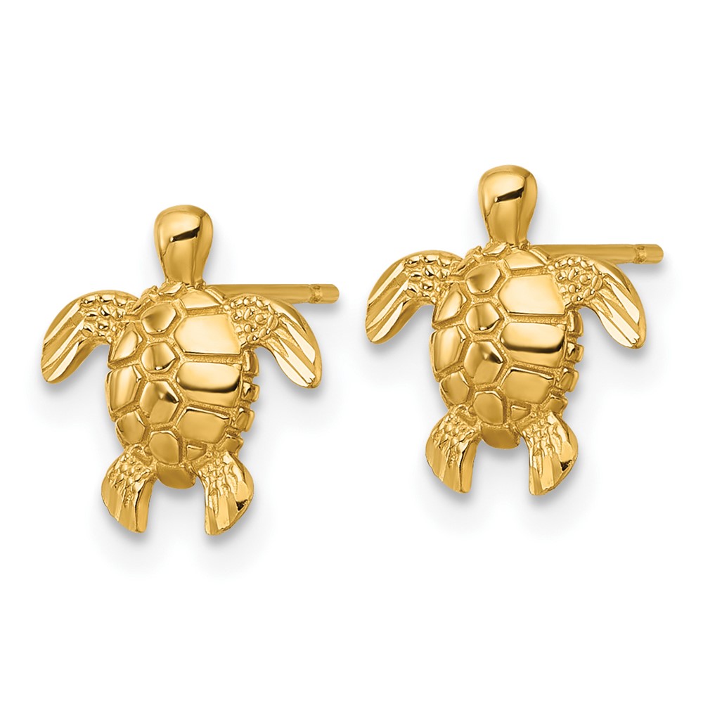 14k Polished and Diamond-cut Turtle Post Earrings