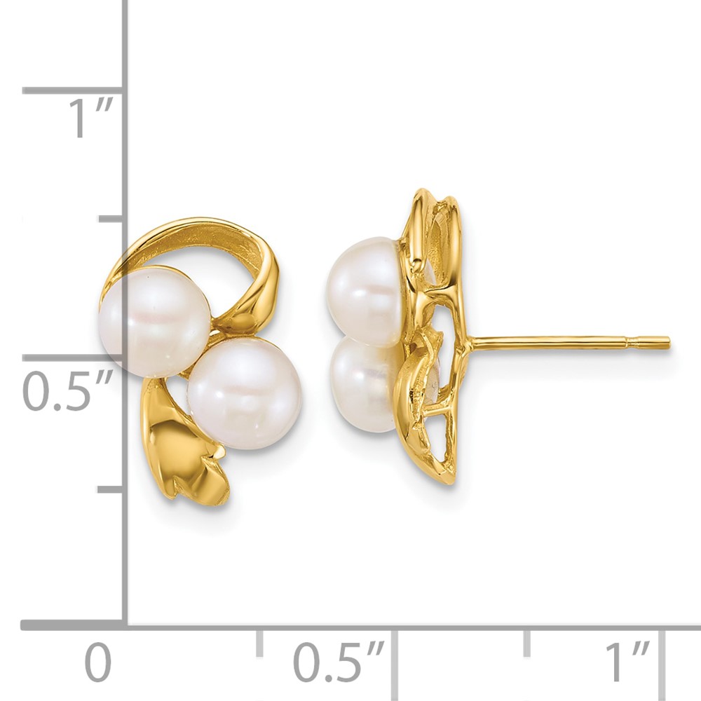 14k Polished 5-6mm Button White Freshwater Cultured 2-Pearl Post Earrings