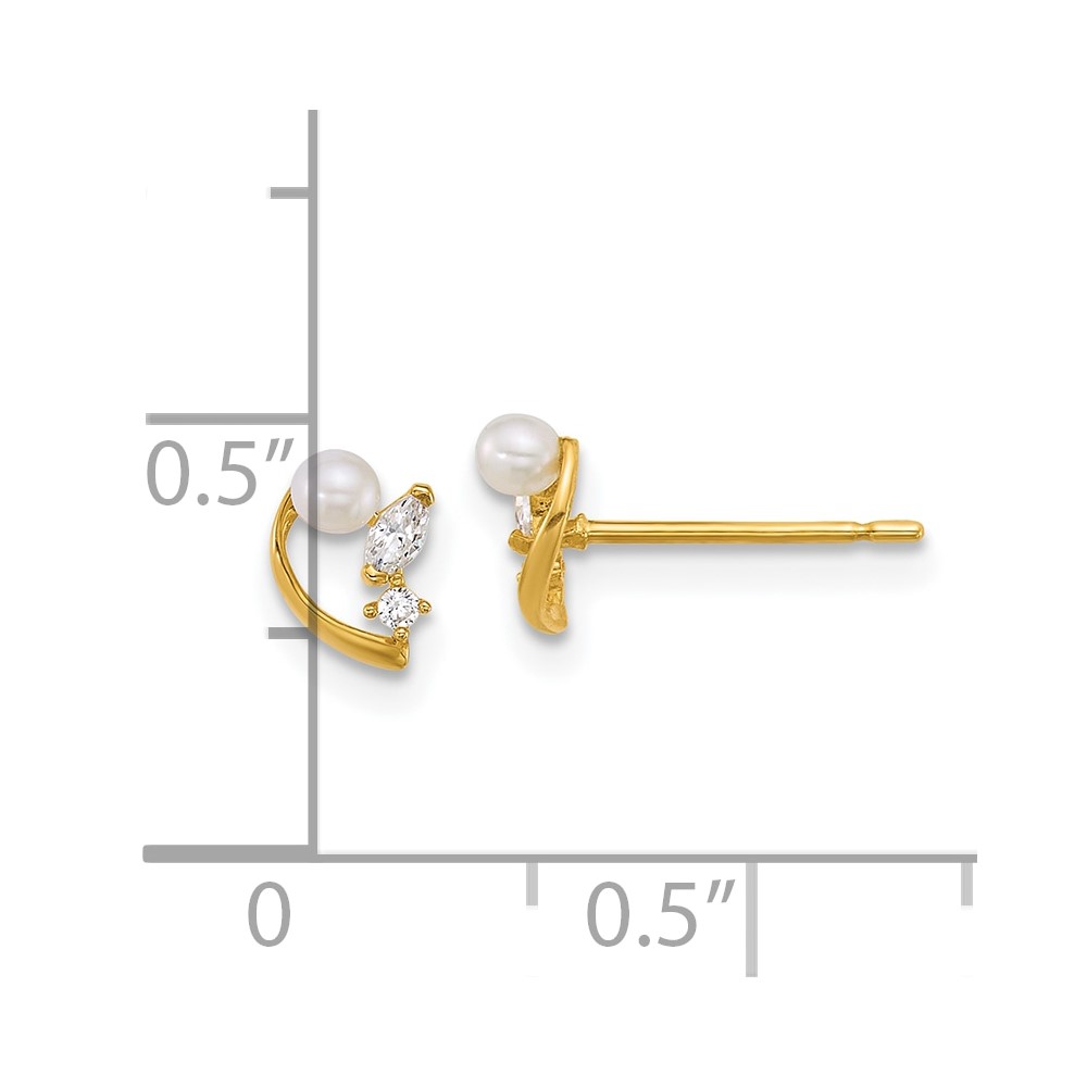 14k Polished CZ and White Freshwater Cultured Pearl Post Earrings