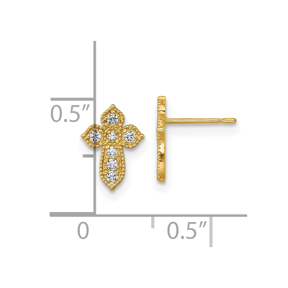 10K Polished CZ Cross Post Earrings